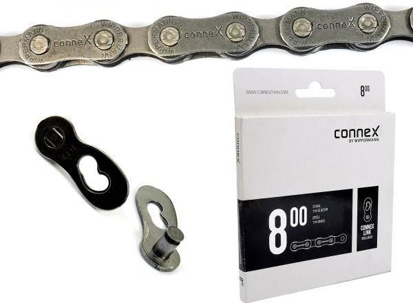 Łańcuch CONNEX 800 6/7/8 rzędowy + spinka 114 ogniw Wszystkie łańcuchy z serii 8 mogą być stosowane w wszystkich napędach 8, 7, oraz 6-biegowych. Specjalne ogniwo zewnętrzne gwarantuje precyzyjną i ciche pracę. Producent: Connex Model: 800 Przeznaczenie: do 8 / 7 / 6 rzędowych trybów i kaset …
