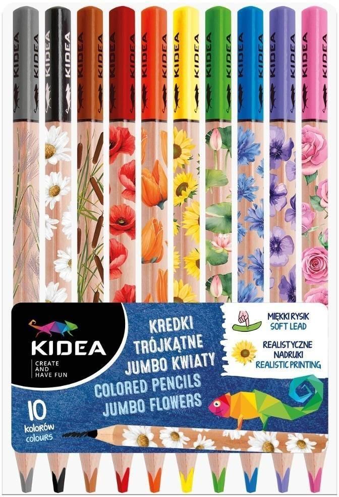 Derform Kredki Trójkątne Jumbo Kwiaty Kidea 10 Kolorów Drobin