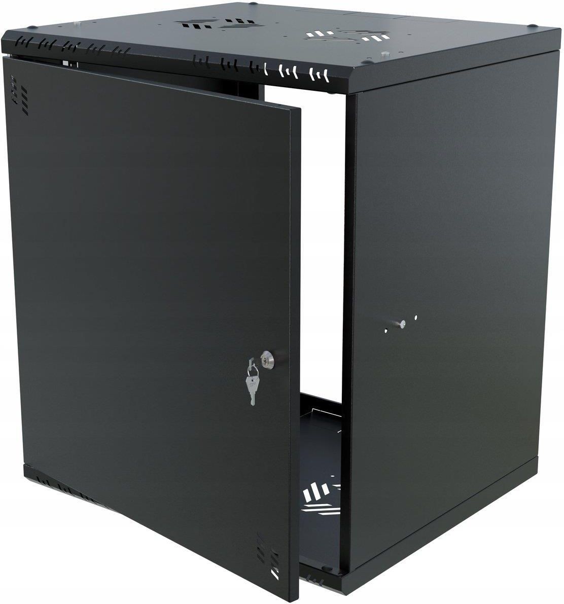 Szafa RACK wisząca 19" 12U 450 Standard metal czarna S-RC19-12U-450MB Szybki i łatwy montaż: Montaż za pomocą jednego śrubokręta. Estetyczny design: Nowoczesny wygląd, który świetnie prezentuje się w każdej przestrzeni. Regulacja mocowania szyn RACK: Możliwość regulacji co 30 mm na trzech głębokościach. Uniwersalny montaż drzwi: Drzwi montowane lewo/prawo za pomocą zawiasu sprężynowego. Zaawansowane chłodzenie: Miejsca na wentylatory i perforacje w przednich częściach zapewniają optymalny przepływ powietrza. Bezpieczeństwo i solidność: Metalowe drzwi zapewniają zwiększone bezpieczeństwo i utrudniają dostęp do wnętrza szafy, a zaślepki PCV na śruby zapewniają estetyczny wygląd i dodatkowe zabezpieczenie. Dodatkowe otwory wentylacyjne: W górnej i dolnej części szafy oraz od frontu i po bokach, zapewniające prawidłową cyrkulację powietrza. Zamek patentowy: Szafa wyposażona w zamek patentowy z 2 kluczami w komplecie. Ślizgacze drzwi: Dzięki zastosowaniu plastikowych ślizgaczy drzwi domykają się cicho, co zapobiega obiciu elementów metalowych. Szafa RACK 19" 12U 450 mm głębokości z pełnymi metalowymi drzwiami z serii Standard marki Stalflex to nowoczesne rozwiązanie dedykowane branży IT, w szczególności dla sektora SOHO. Dzięki solidnej konstrukcji i łatwości montażu, te szafy są idealnym wyborem dla profesjonalistów. Montaż szafy zajmuje tylko kilka minut, co można zobaczyć w naszym filmie na YouTube. Przemyślana konstrukcja Szafa wykonana jest z blachy, która gwarantuje sztywność, a jednocześnie jest na tyle lekka, że jedna osoba może przeprowadzić instalację. Celowe usunięcie tylnej ściany umożliwia wygodną modernizację oraz zapewnia łatwy dostęp do okablowania wychodzącego ze ściany. Liczne otwory w szynach RACK pozwalają na łatwe przeprowadzenie okablowania. Dzięki swojej kompaktowej szerokości wynoszącej zaledwie 520 mm, szafa idealnie nadaje się do miejsc o ograniczonej przestrzeni, pozostając w pełni funkcjonalną. Łatwy montaż Szafę można łatwo przykręcić za pomocą kołków rozporowych (nie znajdują się w zestawie) dzięki otworom w tylnej części. Szafa umożliwia czteropunktowy montaż do ściany, co zwiększa jej stabilność. Drzwi można zamontować zarówno po prawej, jak i lewej stronie, a dzięki specjalnym zawiasom ze sprężyną ich montaż i demontaż jest niezwykle prosty. Szyny RACK można zamontować na trzech głębokościach, co pozwala na swobodne dopasowanie do urządzeń wewnątrz. W górnej i dolnej części znajdują się miejsca na wentylatory 120x120 mm (rozstaw otworów 105x105 mm), co zapewnia odpowiednie chłodzenie urządzeń. Dodatkowo, wyłamywane przepusty kablowe 50x80 mm (3 sztuki w górnej i 3 sztuki w dolnej części) ułatwiają zarządzanie okablowaniem. Szafa jest wyposażona w perforacje od frontu i po bokach, co jest kluczowe dla odprowadzania ciepła. Dane techniczne: KOLOR CZARNY (RAL 9005) MATERIAŁ BLACHA DC01; DX51D + Z250 GRUBOŚĆ BLACHY obudowa - 0,6 mm szyny RACK - 1,5 mm WYMIARY ZEWNĘTRZNE 520x450x596 mm WYMIARY OPAKOWANIA 990x615x70 mm WAGA NETTO 8,2 kg WAGA BRUTTTO: 9,6 kg ZASTOSOWANIE DO WEWNĄTRZ OBCIĄŻENIE 55 kg KLASYFIKACJA IP20