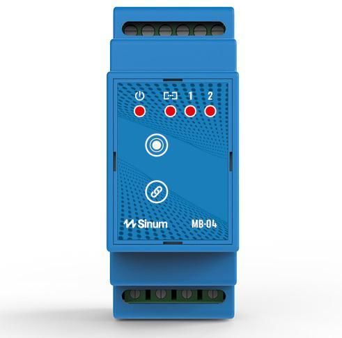 Moduł bezprzewodowy bramy na szynę DIN MB-04 Tech sterowniki Model: MB-04 WG.23.0175 Przeznaczenie MB-04 jest urządzeniem, które dedykowane jest wszystkim tym, którzy lubią mieć wszystko poukładane w jednym miejscu - np. w szafie rozdzielczej. MB-04 ma 2 przekaźniki - wyjścia dwustanowe i 2 wejścia dwustanowe, montuje się go na szynie TH35 podłączając do niego obwody do sterowania bramą. Istnieje możliwość podłączenia do niego również sygnału sterującego. MB-04m komunikuje się z centralą Sinum bezprzewodowo. Po podłączeniu MB-04 otrzymamy możliwość niezależnego sterowania bramą zarówno przy pomocy aplikacji mobilnej jak również manualnie poprzez włącznik ścienny. Po dodaniu i zaprogramowaniu MB-04 w centrali Sinum istnieje możliwość zdalnego sterowania, dodawania scen, akcji oraz ustawienia harmonogramów. Charakterystyka 2 przekaźniki do sterowania 2 obwodami bramy komunikacja bezprzewodowa TECH WTP montaż na szynie DIN Specyfikacja techniczna Komunikacja bezprzewodowa TECH WTP Wysokość 89 mm Szerokość 35 mm Głębokość 65 mm Zasilanie (zmienne napięcie) 24 V Pobór prądu 20 mA Temperatura pracy 5° - 50° °C Liczba wyjść przekaźnikowych 2 Maks. obciążenie przekaźnika 2A (AC1)* / 2A (DC1)** * Kategoria obciążenia AC1: jednofazowe, rezystancyjne lub lekko indukcyjne obciążenie AC. ** Kategoria obciążenia DC1: prąd stały, obciążenie rezystancyjne lub lekko indukcyjne.