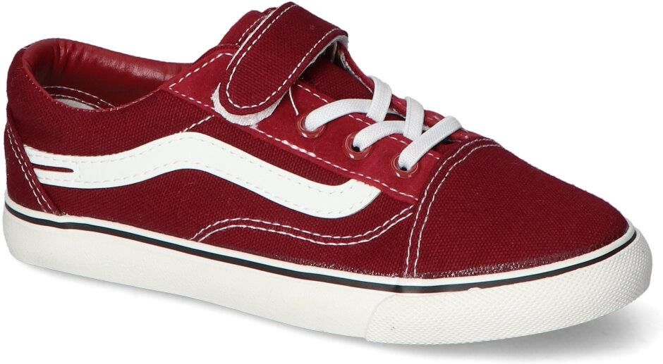 Wygodne, modne trampki dziecięce: - cholewka wykonana została z wytrzymałego materiału tekstylnego - wnętrze pokryte zostało materiałem tekstylnym aby zapewnić komfort podczas użytkowania - wkładka wewnętrzna wykonana została z materiału tekstylnego - zapięcia na rzepy ułatwiają zakładanie i dopasowanie obuwia - podeszwa o grubości 2 cm doskonale stabilizuje stopę - bordowy kolor oraz modny fason zadowolą każdego malucha!