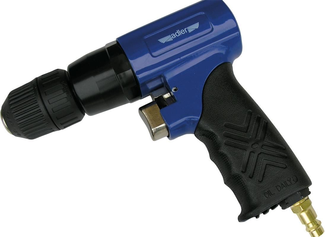Dane techniczne: Maksymalna średnica wiertła: 10 mm Ilość obrotów: 2200 obr./min Średnie zużycie powietrza: 100 l/min Maksymalne ciśnienie pracy 6,3 bar Waga: 1,2 kg Cechy wiertarki pneumatycznej: Wiertarki i wkrętaki pneumatyczne powszechnie wykorzystywane są w przemyśle stolarskim, motoryzacyjnym, technice warsztatowej, na liniach montażowych, w zakładach wytwórczych itd. To narzędzia do wszechstronnego zastosowania w pracach naprawczych i konserwacyjnych – są przydatne dla zawodowców i hobbystów. Cechuje je wyjątkowa jakość wykonania – są ergonomiczne i poręczne dla użytkownika, odporne na przypadkowe uszkodzenia. Posiadają znacznie prostszą i trwalszą konstrukcję co ich elektryczni kuzyni. Regulowany zakres prędkości i zmiana kierunku obrotów pozwala na wykorzystanie narzędzia przy pracach wymagających dużej precyzji. Zalety modelu AD-630 to solidna metalowa obudowa wygodna gumowana rękojeść oraz automatyczny bezkluczykowy uchwyt na wiertła. Ponadto wiertarka wyposażona jest w płynną regulację liczby obrotów przy odpowiednio głębokim wciśnięciu przycisku spustowego oraz przełącznik kierunku obrotów. Modelem AD-630 można pracować z wiertłami do średnicy 10 mm. Zakres dostawy: ADLER AD-630 - Pneumatyczna wiertarka pistoletowa 3/8" Instrukcja obsługi Gwarancja 2 lata - paragon / faktura