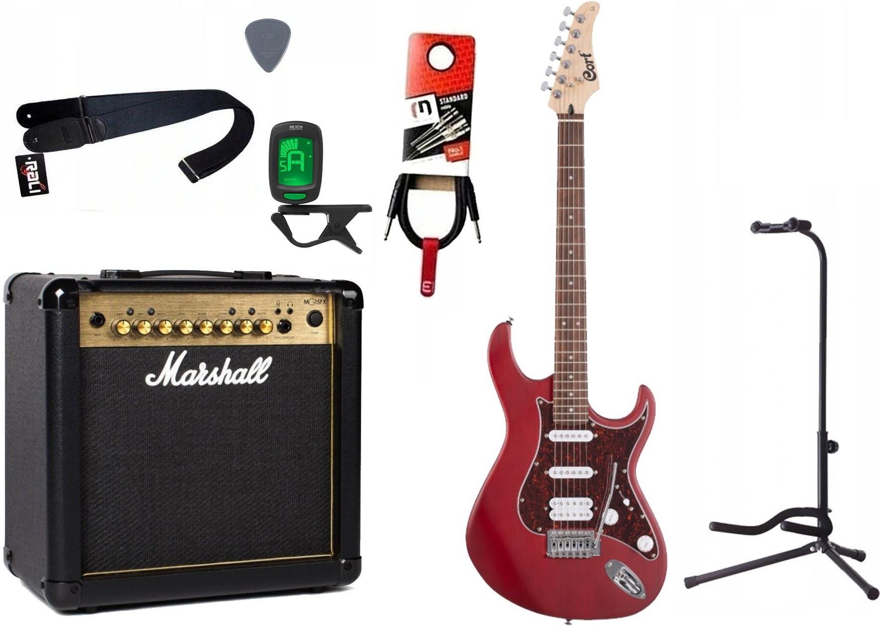 GITARA ELEKTRYCZNA + WZMACNIACZ 15 W KABEL ZESTAW Zestaw gitarowy, elementy zestawu:1x Gitara elektryczna (opis poniżej), 1x Combo gitarowe 15W (Marshall MG15 GFX Gold), 1x Kabel gitarowy 3m (Red's Music GC1130BX), 1x Statyw do Gitary (Hamilton Stands KB-303), 1x Tuner gitarowy (Nexon UTV-200), 1x …