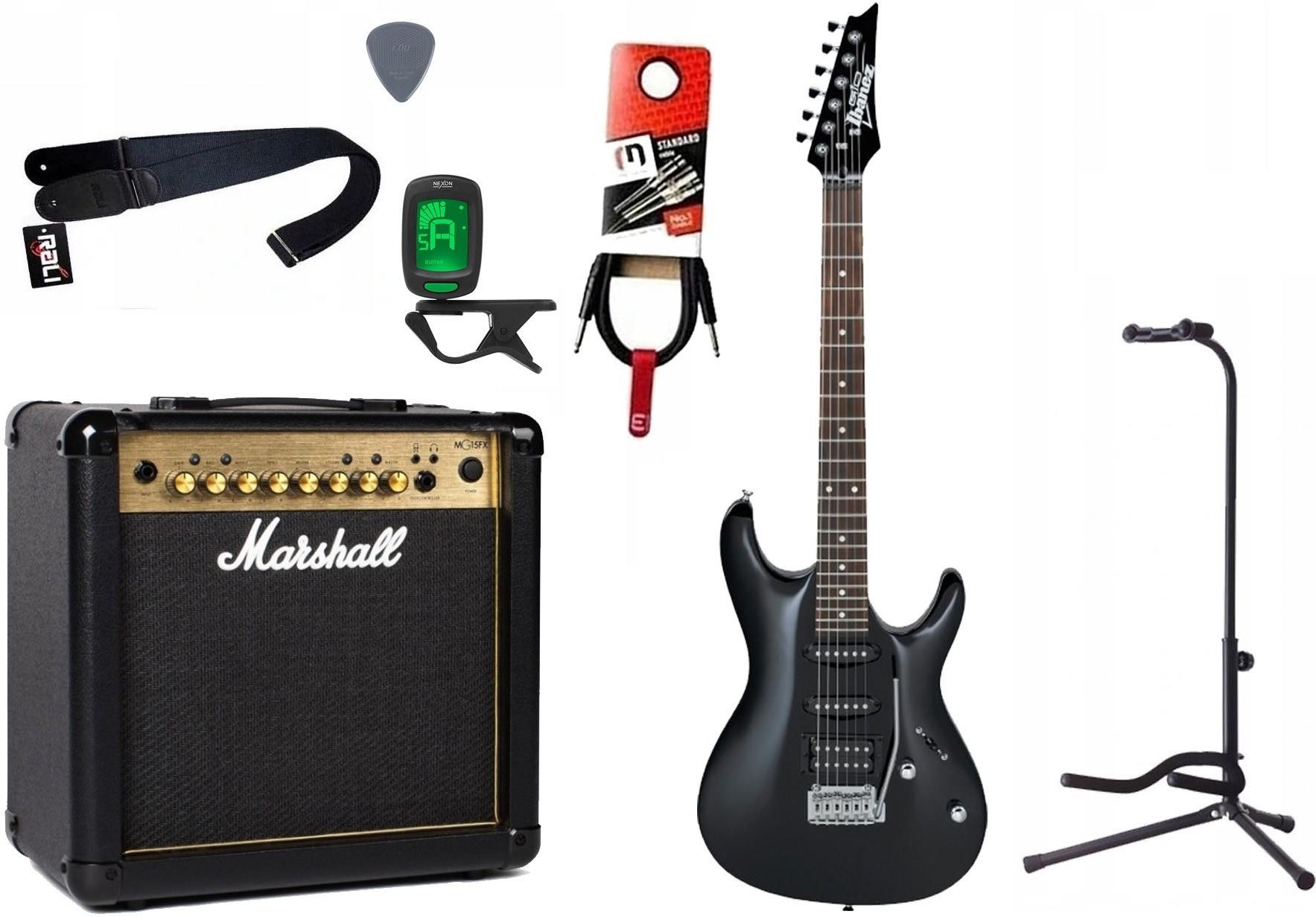 GITARA ELEKTRYCZNA + WZMACNIACZ 15 W KABEL ZESTAW Zestaw gitarowy, elementy zestawu:1x Gitara elektryczna (opis poniżej), 1x Combo gitarowe 15W (Marshall MG15 GFX Gold), 1x Kabel gitarowy 3m (Red's Music GC1130BX), 1x Statyw do Gitary (Hamilton Stands KB-303), 1x Tuner gitarowy (Nexon UTV-200), 1x …