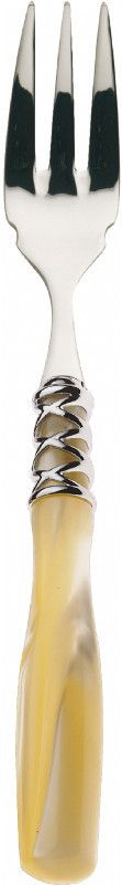 Casa Bugatti ARIANNA IVORY Widelec do mięsa Casa Bugatti ARIANNA IVORY Widelec do mięsa Elegancki design sztućców idealnie komponuje się z nowoczesną zastawą. Sztućce są bardzo wygodne w użytkowaniu. Rączki poszczególnych elementów wykonane zostały z akrylu w kolorze kości słoniowej, stylizowanego na masę perłową. Właściwości: Materiał: stal nierdzewna, akryl, chromowany metalowy pierścień Wymiary: 19,5 cm Produkt można myć w zmywarce do 50/55°C, zalecane mycie ręczne