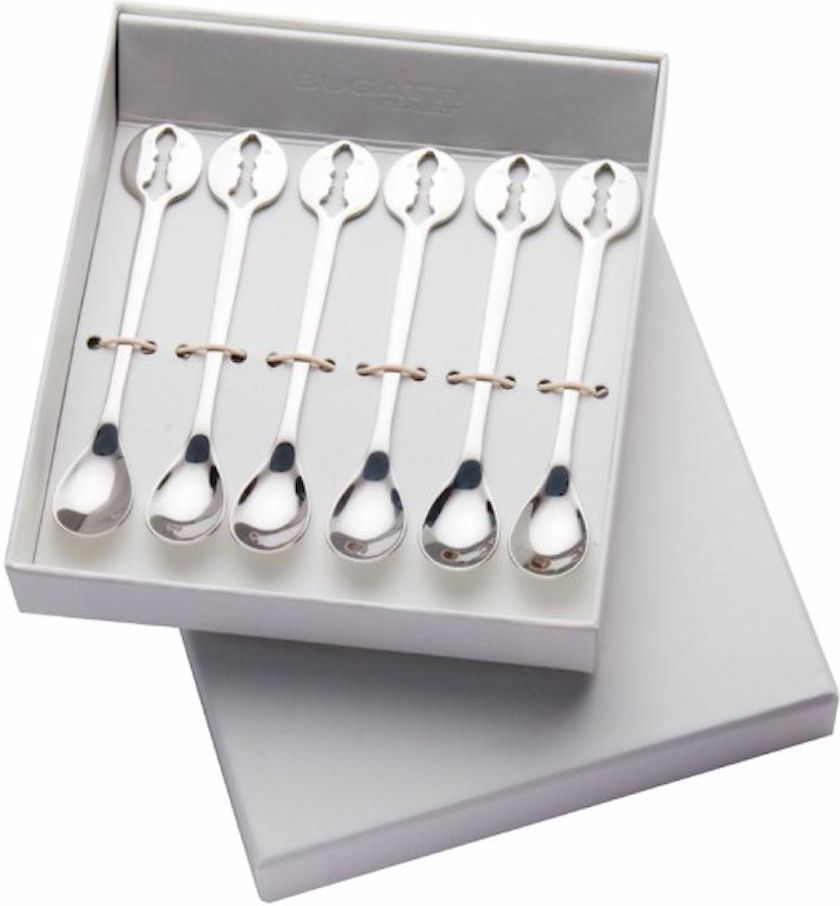Casa Bugatti KISS Komplet 6 łyżeczek do moka Casa Bugatti KISS Komplet 6 łyżeczek do moka Zwieńczenie każdej z łyżeczek ozdobione jest dwoma twarzami zbliżającymi się do pocałunku, które tworzą bardzo oryginalną i niecodzienną formę. Komplet łyżeczek wykonano z chromowanego metalu, dzięki czemu …