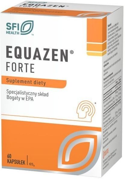 Opis: Equazen Forte 60 kaps to wysokiej jakości suplement diety zawierający starannie dobrane kwasy tłuszczowe omega-3 i omega-6. Produkt został opracowany z myślą o wsparciu pracy mózgu, poprawie koncentracji oraz funkcji poznawczych zarówno u dzieci, jak i dorosłych. W składzie Equazen Forte znajdują się kluczowe kwasy tłuszczowe DHA i EPA oraz GLA, które odgrywają istotną rolę w prawidłowym funkcjonowaniu układu nerwowego. Regularne stosowanie suplementu może wspierać pamięć, skupienie oraz zdolność uczenia się. Equazen Forte jest szczególnie polecany osobom mającym problemy z koncentracją, uczniom, studentom oraz osobom pracującym umysłowo. Produkt często wybierany jest także jako wsparcie w przypadku objawów związanych z ADHD. Bez dodatku cukru, aspartamu, sacharyny, bezglutenowy. Bez sztucznych barwników, aromatów i konserwantów. Wskazania: Equazen Forte rekomendowany jest osobom, które chcą: *wspierać koncentrację, pamięć, funkcje emocjonalne (nadpobudliwość, impulsywność) *poprawić funkcjonowanie mózgu Zalecane stosowanie Zalecana porcja do spożycia w ciągu dnia niezbędna do uzyskania korzystnego działania -> dorośli i dzieci powyżej 5. roku życia: 2 kapsułki dziennie. Przechowywanie: Produkt przechowywać w suchym miejscu, w temperaturze 5-25°C. Chronić przed światłem. Suplement diety powinien być przechowywany w sposób niedostępny dla małych dzieci. Skład: Skoncentrowany olej rybi, olej z (ziaren) wiesiołka dwuletniego (Oenothera biennis L.), otoczka kapsułki (żelatyna wołowa), substancja utrzymująca wilgoć: glicerol, stabilizator: alginian sodu, przeciwutleniacze: ekstrakty z rozmarynu lekarskiego, ekstrakt bogaty w tokoferole. FAQ Czy Equazen Forte jest bezpieczny? Tak, to suplement diety oparty na naturalnych składnikach. Jak długo stosować Equazen Forte? Minimum kilka tygodni dla zauważalnych efektów. Czy Equazen Forte działa na koncentrację? Tak, wspiera funkcje poznawcze dzięki DHA i EPA. Czy można stosować u dzieci? Tak, po konsultacji z lekarzem. Jakie są opinie o Equazen Forte? Większość użytkowników zauważa poprawę koncentracji. Czy to lek? Nie, to suplement diety. EQUAZEN pełna oferta sprawdż Podmiot odpowiedzialny Qpharma Sp. z o.o Wichrowa 7F/10 04-682 Warszawa Nie należy przekraczać zalecanej porcji do spożycia w ciągu dnia. Zrównoważona i zróżnicowana dieta oraz zdrowy styl życia są podstawą zapewnienia prawidłowego funkcjonowania organizmu. Suplement diety nie może być stosowany jako substytut zróżnicowanej diety.