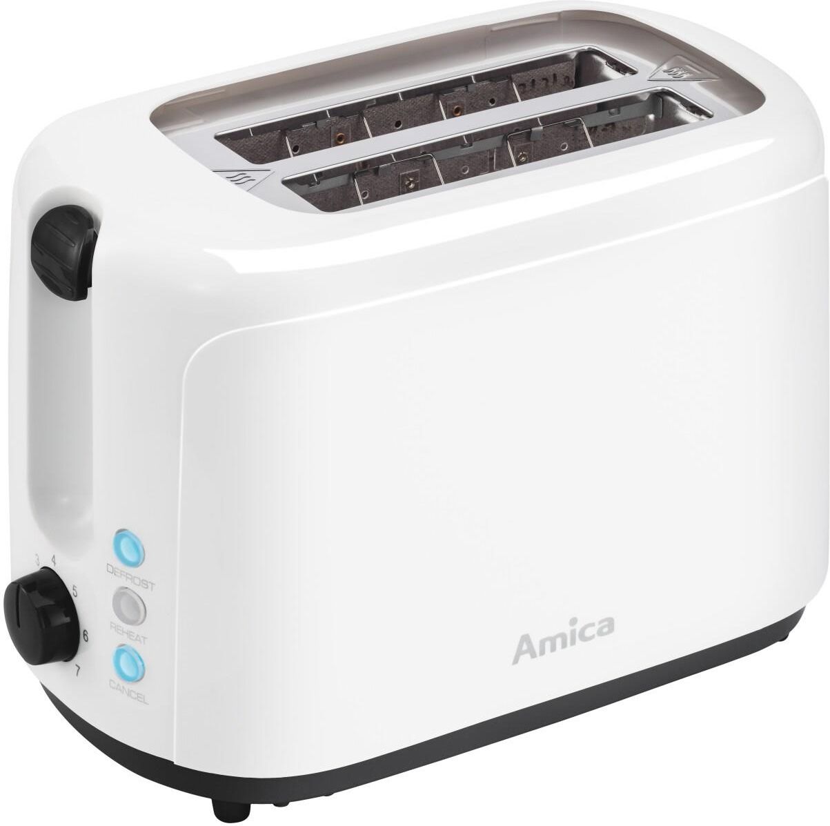 Toster marki Amica o mocy 750W. Uwielbiasz śniadania na ciepło, ale brak Ci czasu lub pomysłu na wykonanie pożywnego i smacznego posiłku? Dzięki funkcji opiekania podpieczenie i zarumienienie grzanek potrwa zaledwie kilka minut.