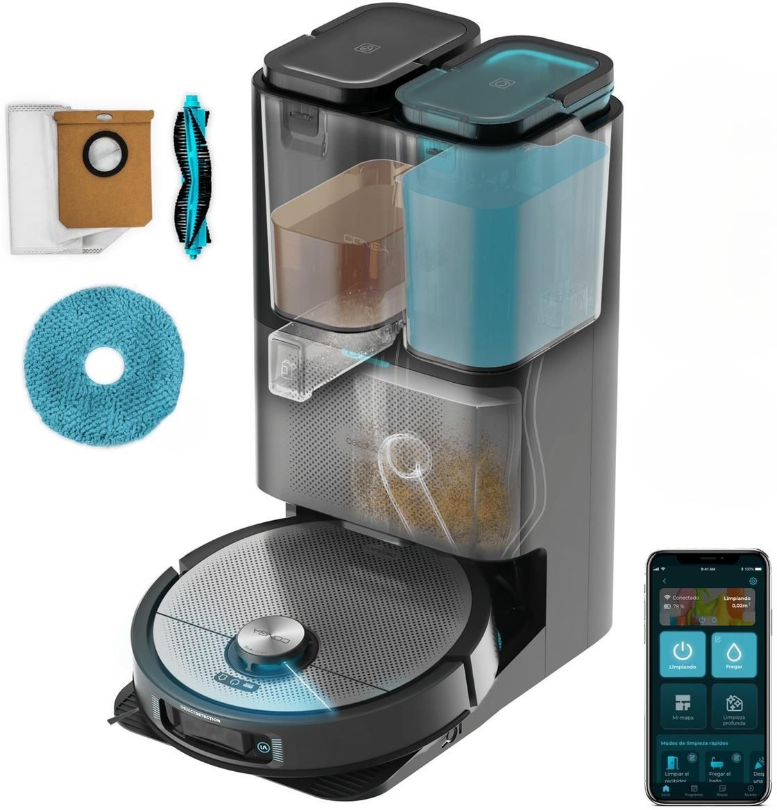 Conga 20090 ProAI InfinitySoap Cut&Spa AI: widzi, myśli i działa AI: widzi, myśli i działa Conga z AI samodzielnie dostosowuje się do warunków w domu, rozpoznaje obiekty, omija przeszkody i ocenia zabrudzenia. Dzięki chipowi 3DIANA sprząta skutecznie, bez Twojego wysiłku – Ty zyskujesz więcej wolnego czasu. Usuwa włosy Stacja Cut&Spa zapewnia robotowi pełną wydajność. Innowacyjny system HairCutting z automatycznym ostrzem tnie zaplątane włosy i od razu je zasysa, dzięki czemu robot sprząta skutecznie za każdym razem, bez potrzeby ręcznego czyszczenia wałka i bez utraty mocy. Zawsze idealnie czyste mopy Stacja Conga 20090 ProAI InfinitySoap Cut automatycznie obsługuje zbiorniki i dezynfekuje mopy gorącą wodą, skutecznie usuwając zabrudzenia i bakterie z włókien. To gwarancja higienicznego sprzątania i ciągłej gotowości robota do pracy. Dokładne i dezynfekujące mycie Technologia Infinity Soap dba o maksymalną czystość i świeżość – mopy obrotowe są ciągle nawilżane odpowiednią mieszanką wody i detergentu, co pozwala skutecznie usuwać bakterie, dokładnie myć podłogi i zostawiać je lśniące oraz pachnące. Mopy obrotowe Wysuwane ramię skutecznie dociera do trudno dostępnych miejsc – krawędzi, listew przypodłogowych czy przestrzeni pod meblami – gwarantując precyzyjne i dokładne czyszczenie. Inteligentna Ochrona dywanów Technologia Carpet Care chroni dywany i zapewnia ich dokładne czyszczenie – robot dzięki ultradźwiękowemu wykrywaniu unosi mopy, by ich nie zamoczyć, a jednocześnie zwiększa moc ssania, skutecznie usuwając nawet ukryte zabrudzenia. Ekstremalne czyszczenie na każdej powierzchni ReadyWarm 1500 Max Ceramic Rotate Black posiada regulowany termostat, który pozwala na dostosowanie temperatury do twoich preferencji. Videomanager – pełna kontrola w Twoich rękach Grzejnik wyposażono w funkcję automatycznego obrotu o 45º, co umożliwia równomierne rozprowadzenie ciepła po całym pomieszczeniu. Dedykowana aplikacja Monitoruj szczegółowe raporty sprzątania, ustawiaj harmonogramy sugerowane przez AI i planuj czyszczenie dla konkretnych pomieszczeń. Dzięki Bluetooth i WiFi (2,4 i 5 GHz) masz pełną kontrolę nad Conga z dowolnego miejsca – szybko i wygodnie. Samodzielna konserwacja Stacja Cut&Spa sama zajmuje się robotem – opróżnia brudną wodę, usuwa zanieczyszczenia, dolewa świeżej wody i dokładnie czyści oraz suszy wałek. Dzięki temu robot jest zawsze gotowy do działania, a Ty nie musisz się niczym przejmować. Najważniejsze cechy Precyzyjna nawigacja laserowa:Conga 20090 ProAI InfinitySoap Cut Dokładnie mapuje Twój dom, docierając do każdego zakamarka nawet w kompletnej ciemności. Sztuczna inteligencja: Chip 3DIANA rozpoznaje i omija obiekty, takie jak kable, skarpetki czy buty, umożliwiając skuteczne czyszczenie nawet w nieuporządkowanej przestrzeni. Tworzy plany sprzątania w czasie rzeczywistym: Zaawansowany algorytm dostosowuje moc i częstotliwość czyszczenia, zapewniając najbardziej inteligentne i efektywne utrzymanie czystości. Technologia Infinity Soap: Urządzenie stale nawilża mopy mieszanką wody i płynu czyszczącego, zapewniając dogłębne mycie, eliminację bakterii oraz pozostawienie podłogi lśniącej i pachnącej świeżością. Podnoszone i wysuwane mopy: Pełna automatyzacja: Stacja Cut&Spa samodzielnie zarządza konserwacją robota, dbając o jego optymalny stan. Automatyczne usuwanie włosów: Dry Care z technologią HairCutting wykorzystuje ostrze umieszczone w bazie, które przecina i natychmiast zasysa zaplątane włosy. Dezynfekcja mopów gorącą wodą i usuwanie brudnej wody:Wet Care z nowoczesnym systemem AutoDose miesza wodę podgrzaną do 60°C z płynem czyszczącym, skutecznie dezynfekując mopy. Ekstremalne czyszczenie każdej powierzchni, nawet grubych dywanów: Ultrapotężna siła ssania 8000 Pa usuwa nawet mikroskopijne zabrudzenia z twardych podłóg, dywanów i wykładzin, zapewniając nieskazitelną czystość. Sprząta do 240 m² na jednym ładowaniu:Dzięki baterii 5200 mAh robot może odkurzać do 240 minut i myć przez 160 minut bez potrzeby ładowania. Podgląd w czasie rzeczywistym i pełna kontrola nad domemRobot jest wyposażony w kamerę, dzięki której możesz w każdej chwili sprawdzić, co się dzieje w Twoim domu i jak przebiega sprzątanie. Wykrywanie zwierząt: Robot rozpoznaje zwierzęta i unika ich, by nie zakłócać ich spokoju. Pełna specyfikacjaWymiary35 x 35 x 10 cmWaga‎10,25 kgMoc ssania8000 PaPowierzchnia sprzątania na jednym ładowaniuDo 240 m2Pojemność zbiornika na nieczystości3,5 LStacja opróżniającaTakStacja czyszczącaTakFunkcje specjalneUsuwanie włosów, Podgląd w czasie rzeczywistym, automatyczne wykrywanie dywanów, rozpoznawanie zwierząt, mopowanieKolorCzarny
