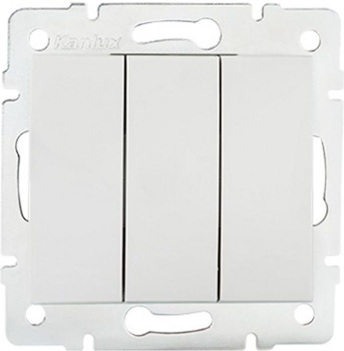 Łącznik Włącznik Potrójny bez Ramki LOGI Biały KANLUX Potrójny łącznik włącznik LOGI w białym kolorze to funkcjonalne rozwiązanie do sterowania trzema różnymi obwodami elektrycznymi. Jego bezramkowy design sprawia, że pasuje do każdego wnętrza, łącząc elegancję z wygodą użytkowania. Doskonale sprawdzi się w większych przestrzeniach, gdzie potrzebne jest sterowanie oświetleniem z różnych miejsc.