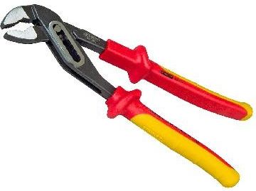 MAXSTEEL VDE WATER PUMP PLIERS 255MM Stanley Przeznaczone do pracy pod napięciem 1000 V Wykonane z wysokogatunkowej stali, hartowane indukcyjnie Bimateriałowa komfortowa rękojeść o specjalnym kształcie chroniącym dłonie Polerowane szczęki pokryte powłoką niklowo–chromową, zabezpieczającą przed korozją Indywidualnie testowane pod napięciem 10 000 V Zgodne z normami DIN EN 60900, IEC/CEI 900, VDE 0682 część 201