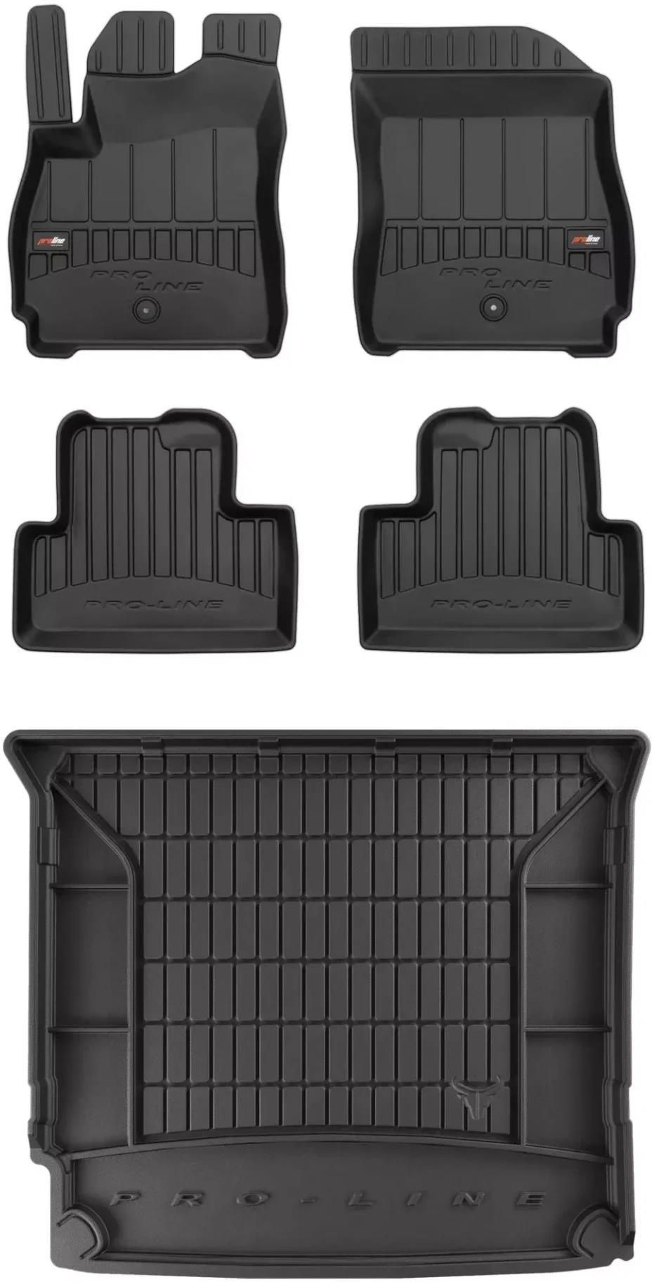 Wysokiej jakości mata i dywaniki samochodowe z serii ProLine. Zalety produktów z zestawu ProLine idealnie dopasowane do podłogi samochodu odporne na odkształcenia i uszkodzenia ekologiczne i bezpieczne dla zdrowia nie wydzielają nieprzyjemnego zapachu zachowują swoją elastyczność przy zmianach temperatury posiadają wysoki rant do 7 cm, który zapobiega wylewaniu lub wysypywaniu się brudu łatwe do czyszczenia dywaniki zawierają stopery pod oryginalne mocowania mata jest przygotowana pod fabryczne haki w bagażniku Cechy dywaników z serii ProLine PowerHalt Unique Surface Technology Unikatowa struktura materiału dywaników samochodowych ProLine daje elegancki efekt i wzmacnia antypoślizgowe własności produktów. Wyróżniający się design nadaje indywidualny charakter wnętrzu samochodu by w każdym calu było wyjątkowe. MaxEdge Technology Dywaniki samochodowe ProLine posiadają unikatową cechę - najwyższe krawędzie na rynku - aż do 7 cm, które gwarantują, że zgromadzone na dywaniku zabrudzenia nie wydostają się poza jego obszar. To sprawia, że nie tylko podłoga samochodu jest chroniona w najwyższym stopniu na rynku - ale także tapicerka samochodu. UltraFlex Dual Polymer Technology To unikalna autorska kompozycja FROGUM dwóch materiałów o najwyższej wytrzymałości na ścieranie nawet w ekstremalnych warunkach. Zachowuje swoją elastyczność i sprężystość w temperaturze od -50 °C do +110 °C. Dywaniki samochodowe ProLine są także odporne na chemię, promienie UV oraz na ścieranie. Idealne dopasowanie - 3D Scan Eksperci FROGUM precyzyjnie za pomocą innowacyjnej technologii 3D skanują wnętrza samochodów, tak żeby dywanik samochodowy doskonale pasował do konkretnego modelu auta. Cechy maty do bagażnika z serii ProLine Doskonała ochrona przed zabrudzeniami Luksusowa wkładka do samochodu ProLine jest wykonana z atestowanych materiałów nieszkodliwych dla zdrowia, a materiał podlega w 100% recyklingowi.Mata samochodowa jest elastyczna i łatwa do utrzymania w czystości, można ją czyścić myjką wysokociśnieniową. UltraFlex Dual Polymer Technology - ekstremalna wytrzymałość i trwałość To unikalna kompozycja materiałów o najwyższej wytrzymałości na ścieranie nawetw ekstremalnych warunkach. Mata zachowuje swoją elastyczność i sprężystość w temperaturze od -50 °C do +110 °C. Jest także odporna na chemię, promienie UV oraz ścieranie.Materiał maty samochodowej ProLine jest zdecydowanie najgrubszy i najtrwalszy z całej palety produktowej FROGUM. MaxEdge Technology - kompleksowa ochrona Najwyższe na rynku krawędzie wkładki do bagażnika ProLine - aż 7 cm - zostały usztywnione tak, żeby nigdy się nie odkształciły. Jednocześnie tak skonstruowane krawędzie wkładki samochodowej ProLine powodują, że doskonale przylegają do ścianek bagażnika i chronią go przez wszelkimi zabrudzeniami. Organizer w bagażniku Antypoślizgowa mata do bagażnika ProLine posiada także wyjątkowy organizer, który ułatwi utrzymanie porządku w samochodzie.Nowoczesny design i idealne dopasowanie sprawiają, że mata do bagażnika ProLine stanowi stylowy i niezbędny element wyposażenia samochodu przez cały rok. Specjalne otwory do montażu siatki na zakupy Luksusowa wkładka do bagażnika ProLine posiada także specjalne otwory na montaż siatki na zakupy, dzięki czemu zawsze można utrzymać porządek i zachować bezpieczeństwo w samochodzie.