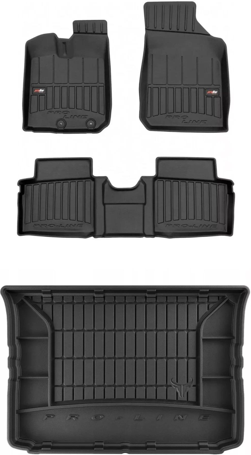 Wysokiej jakości mata i dywaniki samochodowe z serii ProLine. Zalety produktów z zestawu ProLine idealnie dopasowane do podłogi samochodu odporne na odkształcenia i uszkodzenia ekologiczne i bezpieczne dla zdrowia nie wydzielają nieprzyjemnego zapachu zachowują swoją elastyczność przy zmianach temperatury posiadają wysoki rant do 7 cm, który zapobiega wylewaniu lub wysypywaniu się brudu łatwe do czyszczenia dywaniki zawierają stopery pod oryginalne mocowania mata jest przygotowana pod fabryczne haki w bagażniku Cechy dywaników z serii ProLine PowerHalt Unique Surface Technology Unikatowa struktura materiału dywaników samochodowych ProLine daje elegancki efekt i wzmacnia antypoślizgowe własności produktów. Wyróżniający się design nadaje indywidualny charakter wnętrzu samochodu by w każdym calu było wyjątkowe. MaxEdge Technology Dywaniki samochodowe ProLine posiadają unikatową cechę - najwyższe krawędzie na rynku - aż do 7 cm, które gwarantują, że zgromadzone na dywaniku zabrudzenia nie wydostają się poza jego obszar. To sprawia, że nie tylko podłoga samochodu jest chroniona w najwyższym stopniu na rynku - ale także tapicerka samochodu. UltraFlex Dual Polymer Technology To unikalna autorska kompozycja FROGUM dwóch materiałów o najwyższej wytrzymałości na ścieranie nawet w ekstremalnych warunkach. Zachowuje swoją elastyczność i sprężystość w temperaturze od -50 °C do +110 °C. Dywaniki samochodowe ProLine są także odporne na chemię, promienie UV oraz na ścieranie. Idealne dopasowanie - 3D Scan Eksperci FROGUM precyzyjnie za pomocą innowacyjnej technologii 3D skanują wnętrza samochodów, tak żeby dywanik samochodowy doskonale pasował do konkretnego modelu auta. Cechy maty do bagażnika z serii ProLine Doskonała ochrona przed zabrudzeniami Luksusowa wkładka do samochodu ProLine jest wykonana z atestowanych materiałów nieszkodliwych dla zdrowia, a materiał podlega w 100% recyklingowi.Mata samochodowa jest elastyczna i łatwa do utrzymania w czystości, można ją czyścić myjką wysokociśnieniową. UltraFlex Dual Polymer Technology - ekstremalna wytrzymałość i trwałość To unikalna kompozycja materiałów o najwyższej wytrzymałości na ścieranie nawetw ekstremalnych warunkach. Mata zachowuje swoją elastyczność i sprężystość w temperaturze od -50 °C do +110 °C. Jest także odporna na chemię, promienie UV oraz ścieranie.Materiał maty samochodowej ProLine jest zdecydowanie najgrubszy i najtrwalszy z całej palety produktowej FROGUM. MaxEdge Technology - kompleksowa ochrona Najwyższe na rynku krawędzie wkładki do bagażnika ProLine - aż 7 cm - zostały usztywnione tak, żeby nigdy się nie odkształciły. Jednocześnie tak skonstruowane krawędzie wkładki samochodowej ProLine powodują, że doskonale przylegają do ścianek bagażnika i chronią go przez wszelkimi zabrudzeniami. Organizer w bagażniku Antypoślizgowa mata do bagażnika ProLine posiada także wyjątkowy organizer, który ułatwi utrzymanie porządku w samochodzie.Nowoczesny design i idealne dopasowanie sprawiają, że mata do bagażnika ProLine stanowi stylowy i niezbędny element wyposażenia samochodu przez cały rok. Specjalne otwory do montażu siatki na zakupy Luksusowa wkładka do bagażnika ProLine posiada także specjalne otwory na montaż siatki na zakupy, dzięki czemu zawsze można utrzymać porządek i zachować bezpieczeństwo w samochodzie.