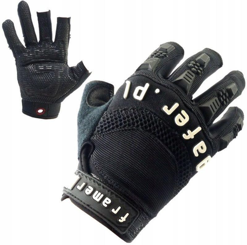 Gafer Framer Rękawice framer są odpowiednikiem modelu grip „z uciętymi” końcówkami rękawic na kciuku, palcu wskazującym i środkowym. Wykonane z elastycznego i przewiewnego materiału, w części wewnętrznej okrytego siateczką z silikonu. Wygodne i profesjonalne rękawice robocze świetnie dopasowują się do dłoni. Odsłonięte trzy palce zapewniają gotowość do wykonywania wymagających prac manualnych bez konieczności ściągania rękawiczek. Ponadto gwarantują wysoki komfort oraz precyzję pracy. Aby swobodnie ruszać dłonią w rękawicach framer zastosowano krótkie mankiety z klejonym, a następnie szytym, bezpiecznym dla skóry rzepem. Jest on zaopatrzony jest w ID tag (miejsce do podpisania rękawic) oraz element do wciągania i przytwierdzania rękawic do uchwytu czy karabińczyka. Miejsca strategiczne (wewnątrz dłoni oraz na knykciach) zabezpieczono poduszką piankową. Natomiast zewnętrzne części palców chronią gumowe elementy. Końcówki palców w rękawicach framer chroni dodatkowa warstwa materiału, wszyta podwójnym szwem. Palce i chwytna część dłoni zostały pokryte silikonowym antypoślizgowym materiałem, a na kciukach umieszczono „ręczniczek” z materiału frotté. Rozmiar: M