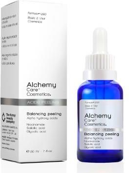 Alchemy Care Cosmetics Balancing Peeling do Twarzy 30ml To skoncentrowany peeling złuszczający zawiera alfa-hydroksykwasy, niacynamid, kwas salicylowy i kwas glikolowy, które zapewniają równowagę skóry, jednocześnie głęboko złuszczając i odnawiając. Zapewni działanie bakteriobójcze, odnawiając, nadając teksturę i równoważąc produkcję sebum. Dodatkowo dzięki intensywnemu złuszczaniu poprawi wygląd plam pigmentacyjnych i nierówności kolorytowych. Pojemność: 30ml