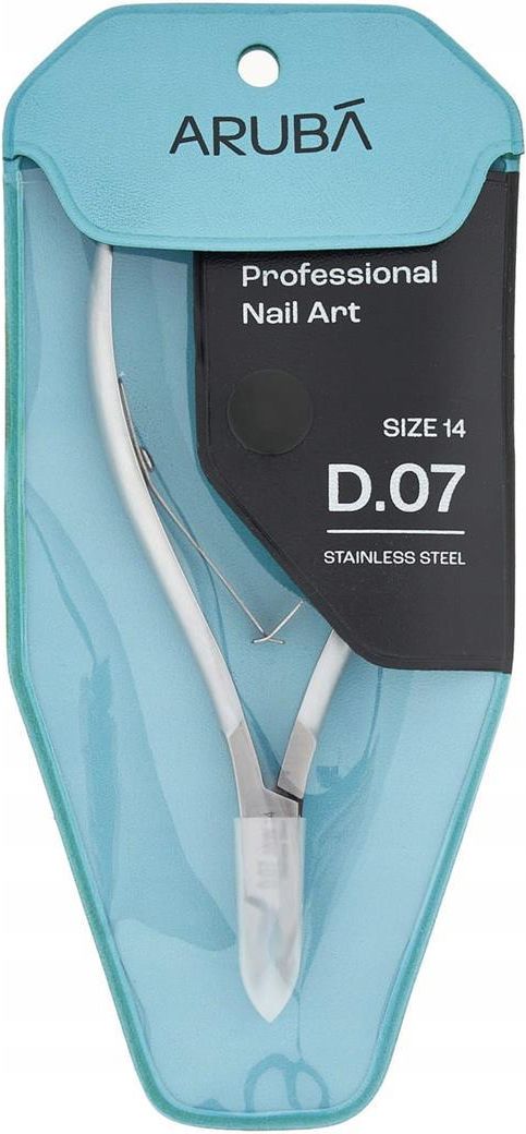 Cążki do paznokci D07 14mm Aruba Cążki do skórek wykonane ze stali nierdzewnej INOX, dzięki czemu są wysoce odporne na zniszczenia i stępienie. Wygodny uchwyt i ergonomiczny kształt sprawiają, że obsługa cążków jest prosta i wygodna. Cążki nadają się do sterylizacji w autoklawie. STAL NIERDZEWNA …