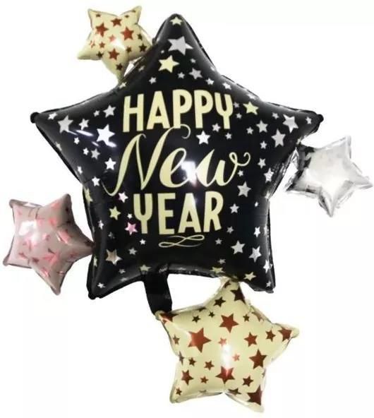 Balon Foliowy Happy New Year! Z Małymi Gwiazdami 69cm X 75cm Na Hel 5600461225810 Dynów