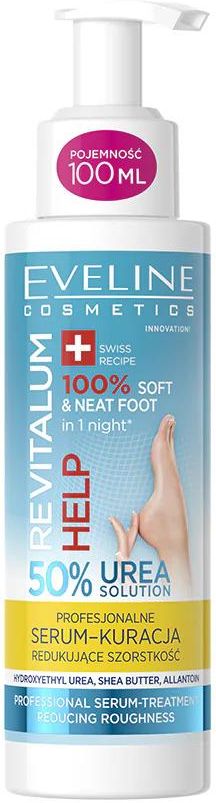 Eveline Cosmetics Revitalum Krem serum do stóp z mocznikiem 50% Profesjonalne serum – kuracja redukujące szorstkość działa kompleksowo, łącząc silne właściwości złuszczające z intensywną regeneracją i długotrwałym nawilżeniem. Wysokie stężenie kompleksu mocznikowego wspomaga rozluźnianie struktur …