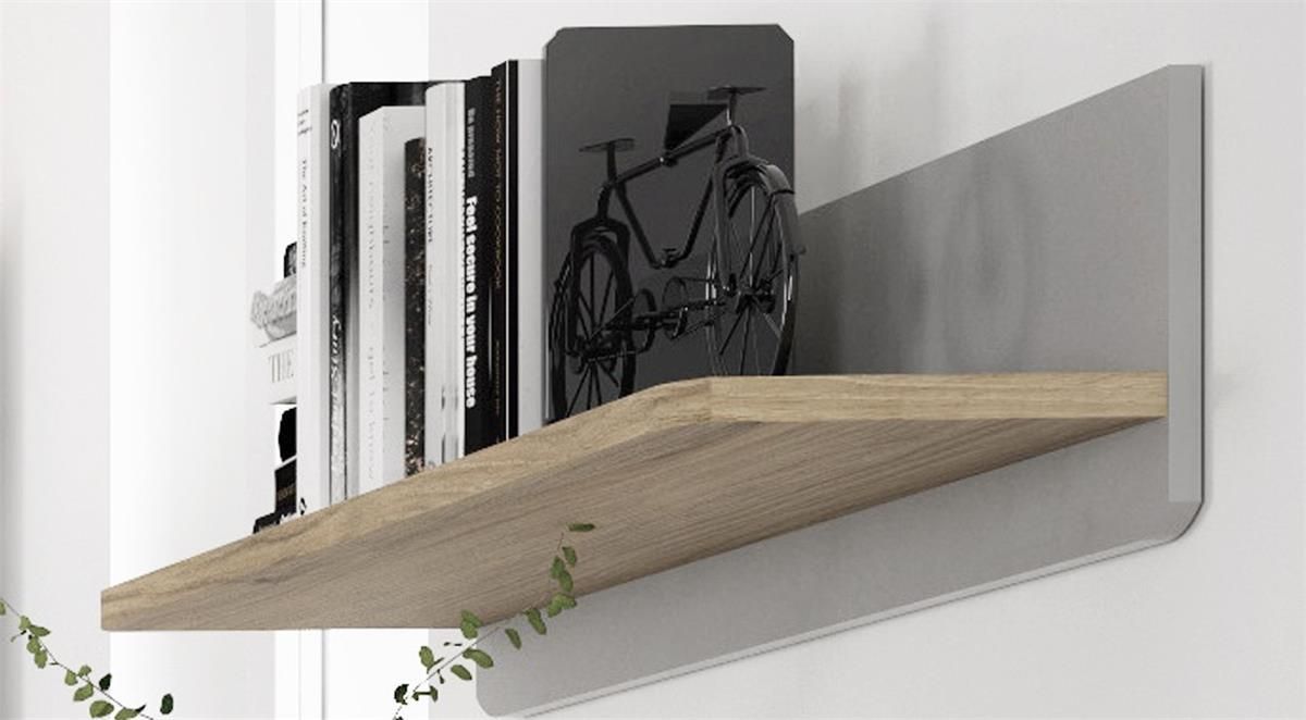 Półka wisząca SURFINIO SFNB01 O kolekcji: Meble z kolekcji SURFINIO powstały z myślą o funkcjonalnym pokoju młodzieżowym. Uniwersalna stylistyka, która łączy w sobie prostotę i indywidualny charakter, stanowi doskonałe tło dla twórczych działań i otwiera pole do popisu wyobraźni. Uwadze nie mogą umknąć również wyjątkowa funkcjonalność i elegancja mebli, będąca doskonałym uzupełnieniem pokoju nastolatka. Uniwersalne kolory sprawiają, że meble są świetnym wyborem zarówno dla chłopców i dziewczynek, ale również będą świetną propozycją na stworzenie gabinetu. Meble w paczkach do samodzielnego montażu. Wymiary: Szerokość: 110 cm Wysokość: 22,8 cm Głębokość: 21,9 cm Dostępny kolor: M378 Szary + Szary + Catania Oak