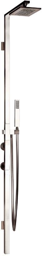 Gessi Rettangolo Panel natryskowy termostatyczny chrom 23405.031 / 23405031 W zestawie: wąż 150 cm, słuchawka regulowany uchwyt na słuchawkę Kolor: chrom Na zdjęciu kolor szczotkowany nikiel Wymiary: Wysokość: ~1774 mm Rozmiar deszczownicy: 216x140 mm Odległość od ściany: ~500 mm Cena dotyczy samego panelu.