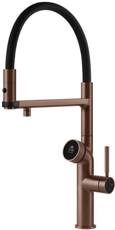VITA Gessi™ – luksusowa bateria kuchenna z inteligentnym systemem wody z wodą zimną i wrzątkiem VITA Gessi™ to rewolucja w świecie baterii kuchennych – pierwszy model z cyfrowym interfejsem, który zapewnia maksymalną funkcjonalność, elegancję i wygodę. To wybór dla tych, którzy od codziennych przedmiotów oczekują czegoś więcej – designu, technologii i troski o środowisko. Bateria w kolorze miedzi szczotkowanej. Woda, jakiej potrzebujesz – zawsze pod ręką VITA Gessi™ pozwala cieszyć się wodą filtrowaną dokładnie taką, jaką lubisz: – zimną, gorącą, wrzącą lub gazowaną – a wszystko to z zachowaniem najwyższej czystości i bezpieczeństwa. Zintegrowany cyfrowy interfejs umożliwia szybki wybór rodzaju i ilości wody, a także zapis aż 24 spersonalizowanych ustawień. Wystarczy jedno dotknięcie, by napełnić szklankę, butelkę lub filiżankę wodą w idealnej temperaturze i ilości. Luksus spotyka technologię Bateria VITA Gessi™ została zaprojektowana z myślą o najbardziej wymagających użytkownikach. Minimalistyczna forma, elegancki panel sterujący i intuicyjne ikony sprawiają, że każdy kontakt z urządzeniem jest przyjemnością. Korzyści, które odczujesz od razu: pełna kontrola nad temperaturą i ilością wody, trzy poziomy nasycenia CO₂ w wodzie gazowanej, oszczędność czasu i wygoda – bez konieczności gotowania wody czy chłodzenia w lodówce, natychmiastowy dostęp do wody wrzącej (100°C) – idealnej do herbaty czy gotowania. Dostosowana do Twojego stylu życia Z myślą o różnych potrzebach, system dostępny jest w trzech wersjach funkcjonalnych: z wodą zimną, z wodą ciepłą, lub z wodą ciepłą i wodą zimną Bateria idealnie komponuje się z różnymi aranżacjami kuchni – od nowoczesnych po klasyczne – dzięki aż siedmiu wyjątkowym wykończeniom: Warm Bronze Br. PVD Chrome Matte Black Finox Brushed Nickel Black Metal Br. PVD Copper Brushed PVD Brass Brushed PVD. Komfort użytkowania na najwyższym poziomie Profesjonalna wylewka obraca się o 360°, zapewniając pełną swobodę ruchu. Boczne pokrętło pozwala wygodnie sterować przepływem wody, a wyciągana końcówka ułatwia mycie większych naczyń i zlewu. Specyfikacja techniczna – bez kompromisów: wysokość baterii: 514 mm, zasięg wylewki: 228 mm, wysokość wypływu wody: 290 mm, średnica otworu montażowego: 35 mm, w zestawie: elastyczne węże przyłączeniowe i końcówka typu handshower. Ekologia i bezpieczeństwo w jednym systemie Zaawansowane tryby pracy – Eco, Holiday i Cleaning – pomagają oszczędzać wodę i energię nawet wtedy, gdy z baterii nie korzystasz. VITA Gessi™ dba także o bezpieczeństwo – system wykrywa ewentualny wyciek i automatycznie odcina dopływ wody. Nagrodzona designem, stworzona z myślą o przyszłości VITA Gessi™ została laureatem prestiżowej nagrody iF Design Award 2023 w kategorii Product Design/Kitchen. Jury doceniło ją za połączenie technologii z intuicyjną obsługą, możliwość personalizacji oraz elegancki, ponadczasowy styl. VITA Gessi™ to coś więcej niż bateria – to serce nowoczesnej, świadomej kuchni. Wybierz rozwiązanie, które codzienność zamienia w luksusowy rytuał.