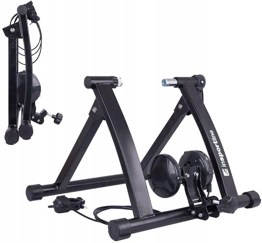 Trenażer kolarski rowerowy inSPORTline Gibello z regulacją 16389 Trenażer rowerowy inSPORTline Gibello to nowoczesne urządzenie, przeznaczone do domowego treningu z wykorzystaniem tradycyjnego roweru. Głównym atutem modelu jest wysokiej jakości, metalowa konstrukcja z mechanizmem składania. Rolka, po której porusza się tylne koło, jest hamowana za sprawą oporu magnetycznego, który gwarantuje płynną, cichą pracę trenażera. Poziom obciążenia reguluje się przy pomocy praktycznego mechanizmu, który można przymocować do kierownicy roweru. Trenażer inSPORTline Gibella można użytkować z rowerami z kołami w rozmiarze od 26 do 28. Dzięki doskonałym właściwościom, wysokiej funkcjonalności i maksymalnie cichej pracy, jest idealnym rozwiązaniem dla miłośników jazdy na rowerze, którzy nawet w okresie zimowym, chcą utrzymywać formę. Opis techniczny Solidna, metalowa, składana konstrukcja Regulacja obciążenia za pomocą mechanizmu na kierownicy 6 stopni obciążenia Kompatybilny z rowerami z kołami w rozmiarze 26- 28" Szybkie przypinanie Pozycjonowany hamulec magnetyczny Kompaktowe wymiary System kompensujący nierówności podłogi W zestawie uchwyt na przednie koło oraz zapasowa oś z szybkozamykaczem na tylne koło Nie nadaje się do rowerów ze stałą osią Wymiary: 61 x 54,5 x 40,5 cm Wymiary podstawy: 47,5x4,5.5 cm Profil ramy: 5 x 2,5 cm i 3 x 3 cm Wymiary po złożeniu: 47x54,5x22 cm Wymiary paczki: 51x23x59 cm Waga: 7 kg Nośność:150 kg (użytkownik + rower) Zalecamy stosowanie z gładkimi oponami Instrukcja obsługi - Trenażer kolarski rowerowy inSPORTline Gibello - PL Parametry Gwarancja: 120 Waga produktu: 7 kg Wysokość: 40.50 cm Szerokość: 54.50 cm Długość: 61 cm Regulacja oporu: Ręczna Poziomy obciążenia: 6 System oporu: Magnetyczny System wyrównania nierówności podłogi: Tak Do rozmiaru koła: 26-28 ʺ Smart: Nie Maksymalna waga użytkownika: 150 kg Rodzaj mocowania: Bolec z szybkim odpięciem