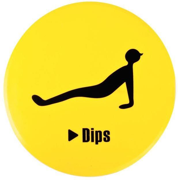 Znaki do stanowisk treningowych inSPORTline Agily 11012 Znaki do stanowisk treningowych inSPORTline Agily służą do znakowania różnych typów ćwiczeń i ich stanowisk, znajdą zatem zastosowanie w szerokim spektrum treningów w pomieszczeniach lub na wolnym powietrzu. Idealnie nadają się np. do treningu kołowego, który ostatnio zyskuje na popularności. Te wytrzymałe znaki z elastycznego materiału w wyrazistym żółtym kolorze docenią nie tylko trenerzy, ale również osoby trenujące. Dzięki szorstkiej powierzchni spodu znaki pozostaną na swoim miejscu nawet na śliskich podłogach. Zestaw zawiera 10 znaków z różnymi ćwiczeniami. Opis techniczny znaki z rysunkami do znakowania stanowisk do ćwiczeń idealne do treningu kołowego powierzchnia antypoślizgowa na stronie wewnętrznej średnica znaku: 24,5 cm waga jednego znaku: 125 g materiał: SEBS (kopolimer blokowy styrenu o wysokiej elastyczności), olej parafinowy do użytku zarówno w pomieszczeniach, jak i na zewnątrz Zestaw zawiera następujące znaki 1) Bicycle - rowerek 2) Dips - pompki na triceps 3) Lunge- wykroki 4) Plank Hood - deska 5) Push Up - pompki 6) Sit Up - ćwiczenia sit up 7) Squats - przysiady 8) Star Jump - gwiazdy 9) Tuck Jumps - przysiady z wyskokiem 10) V-sits - brzuszki Parametry Materiał: SEBS Gwarancja: 24 Waga (g): 125 g Liczba sztuk w paczce: 10 Szt. Średnica: 24.50 cm
