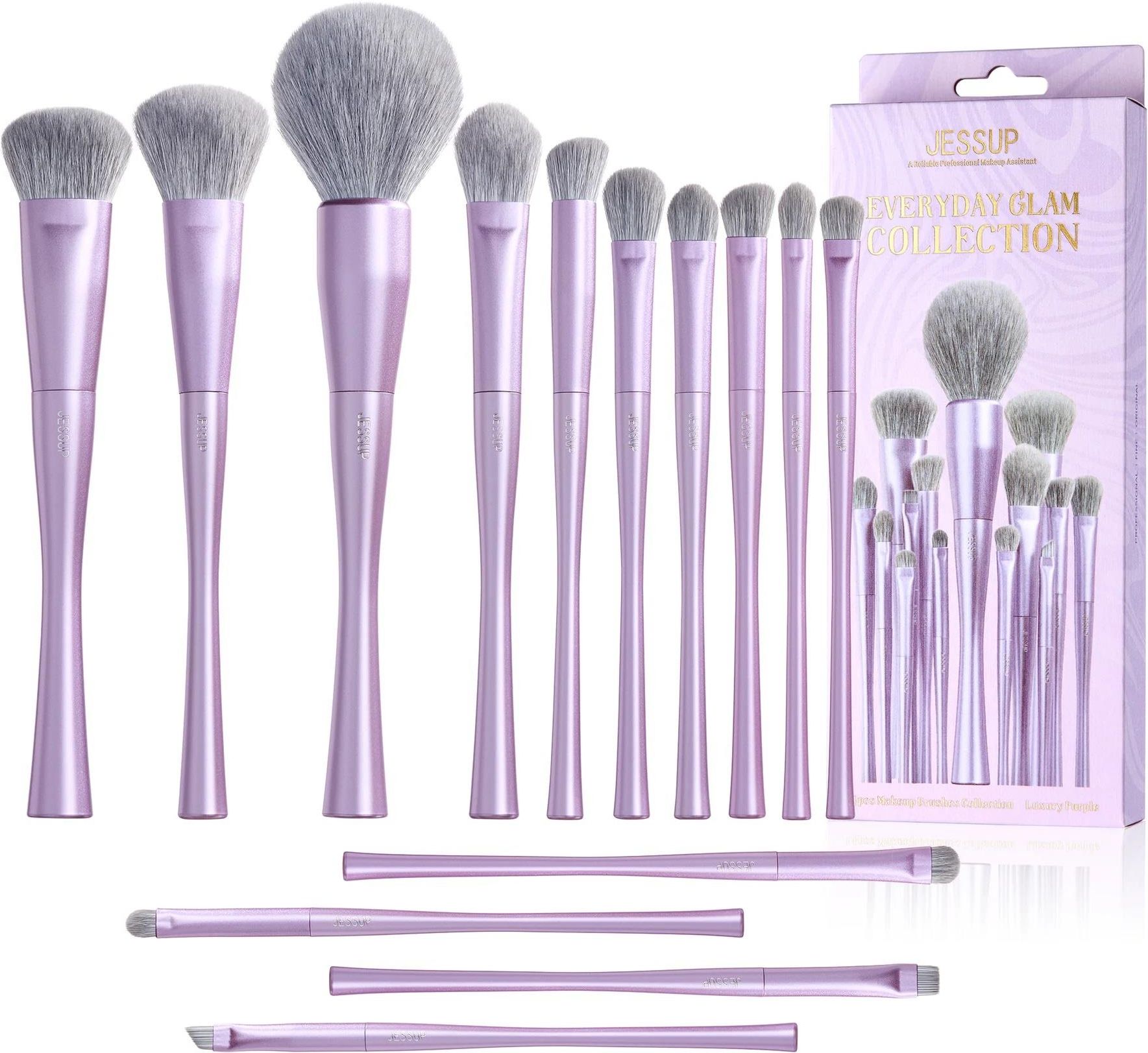 Jessup Everyday Glam Collection Zestaw Pędzli do Makijażu T512 14-częściowy zestaw luksusowych fioletowych pędzli do makijażu. Ten luksusowy zestaw pędzli prezentuje charakterystyczny zakrzywiony design JESSUP, elegancko łączący funkcjonalność i styl. Zawiera 5 fachowo wykonanych pędzli do twarzy i 9 precyzyjnych pędzli do oczu, co czyni go idealnym wyborem dla entuzjastów makijażu na każdym poziomie umiejętności, od początkujących po doświadczonych artystów, którzy chcą podnieść swój kunszt. Włosie: Jessup Exclusive Faux Natural Hair, wegańskie, nie testowane na zwierzętach, łatwe do czyszczenia. Unikalne uchwyty: Trwały uchwyt ABS, estetycznie zakrzywiony design, łatwy do trzymania. Pędzle zapakowane są w eleganckie pudełko z błyszczącym wzorem, jest to wspaniały wybór na prezent. Wersja: T512