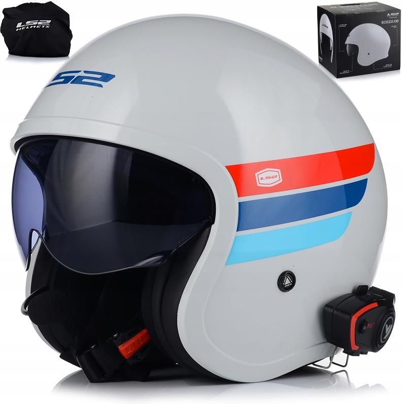 Ls2 Of599 Spitfire Retro Biały + Interkom 1St Bluetooth Dynów