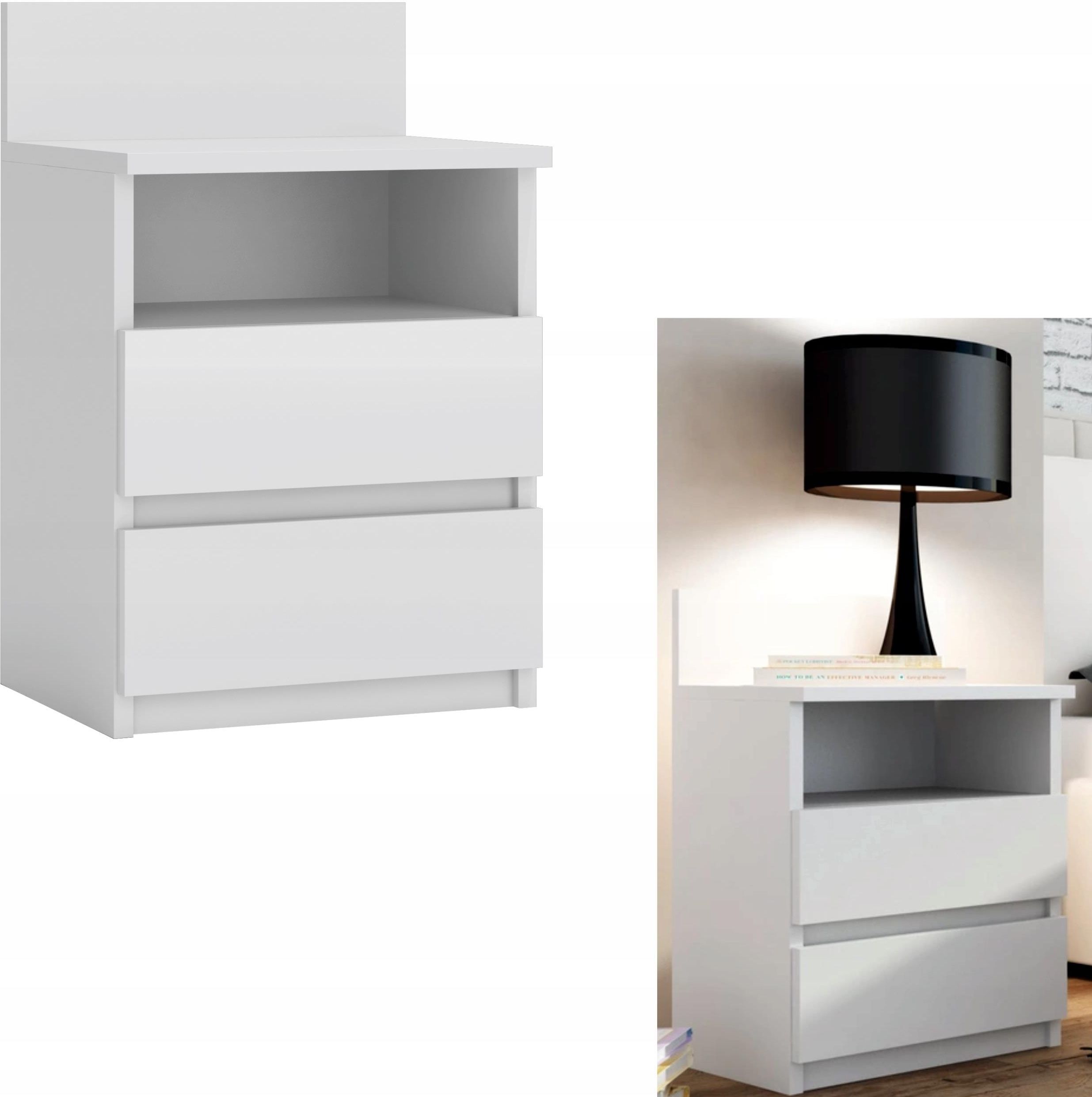 NOWOCZESNA SZAFKA/STOLIK NOCNY 2 SZUFLADY MALWA M1 KOLOR: BIEL MAT Niezbędnym elementem każdej sypialni są szafki nocne. Okulary, ulubiona książka czy telefon, muszą być zawsze pod ręką. Dlatego nasze szafki nocne, to idealne rozwiązanie. Uniwersalny wygląd sprosta oczekiwaniom wszystkich, którzy cenią połączenie prostoty i elegancji. ▶️ Dlaczego nasza szafka : ✔️ 2 szuflady oraz praktyczna półka. ✔️ Minimalistyczna konstrukcja. ✔️ Bezuchwytowe fronty szuflad zapewniają wygodne użytkowanie i podkreślą modernistyczny charakter wnętrza. ✔️ Nowy typ okuć, gładkie boki bez zaślepek. ✔️ Szuflady na prowadnicach rolkowych to gwarancja wygodnego, a przede wszystkim bezpiecznego użytkowania. ✔️ Polski producent. ▶️ Wymiary szafki: Głębokość: 32 cm Szerokość: 40 cm Wysokość: 59 cm ▶️ Użytkowanie: Powierzchnię mebla czyścić przy pomocy miękkiej szmatki. Unikać stosowania silnie działających środków chemicznych. ✂️ Produkt przeznaczony do samodzielnego montażu. Instrukcja montażu wraz ze wszystkimi potrzebnymi akcesoriami montażowymi znajduje się w opakowaniu.
