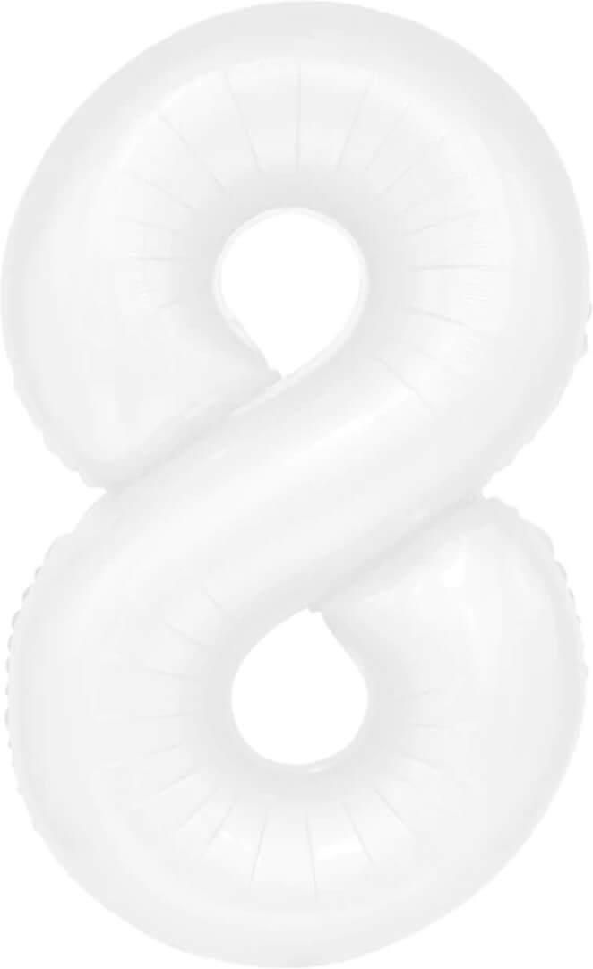 Balon foliowy w kolorze białym cyfra osiem 8. Wysokość: 100 cm. Do balonu dołączona jest słomka. Opakowanie: 1 szt.