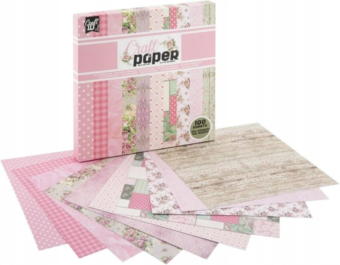 Papier do scrapbookingu Craft ID Pink Roses 20x20 cm. – zestaw 100 arkuszy Zestaw papierów do prac ręcznych z kolekcji Pink Roses to idealny wybór dla miłośników romantycznych wzorów i eleganckich projektów rękodzielniczych. W zestawie znajduje się 100 arkuszy papieru o wymiarach 20 x 20 cm (8x8"), które pozwalają na tworzenie wyjątkowych kompozycji pełnych uroku i delikatności. Każdy zestaw zawiera 10 różnych wzorów, inspirowanych pięknem róż i klasyczną estetyką florystyczną. Zawartość zestawu 50 arkuszy o gramaturze 200 g/m² – idealnych jako solidna baza do kartek okolicznościowych, albumów czy innych kreatywnych prac, 50 arkuszy o gramaturze 80 g/m² – doskonałych do delikatnych dekoracji, wklejek i drobnych elementów. Cechy produktu Wszechstronność zastosowania – świetnie nadaje się do scrapbookingu, tworzenia kartek okolicznościowych, dekoracji albumów, zaproszeń czy ozdobnych opakowań, Łatwość cięcia i klejenia – wysokiej jakości papier dobrze współpracuje z nożyczkami, wykrojnikami i klejem, Styl romantyczny – wzory pełne róż w różnych odcieniach różu, które dodają subtelnego wdzięku każdemu projektowi. Kolorystyka i wzory Delikatne róże, pastelowe różowe tony i subtelne ornamenty tworzą harmonijną i ciepłą paletę kolorów, która idealnie sprawdzi się w projektach o romantycznym i eleganckim charakterze. Ilość: 100 arkuszy Wymiary: 20 x 20 cm (8x8") Craft ID Pink Roses to wyjątkowy zestaw papierów, który podkreśli piękno każdego projektu artystycznego, dodając mu elegancji i niepowtarzalnego uroku.