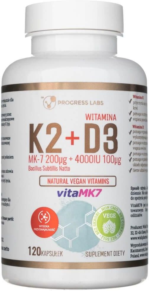 Progress Labs Witamina K2 vitaMK7 z natto 200mcg + D3 4000IU 100mcg 120 kaps Dynów