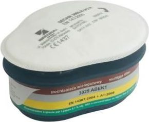Zestaw filtrów 3045 ABEK1 P2 R (pochłaniacz 3025 ABEK1 + filtr SECAIR 3000.02 P2 R) po skompletowaniu z półmaską lub maską chroni układ oddechowy przed gazami i parami substancji organicznych i nieorganicznych, parami i gazami kwaśnymi, amoniakiem i jego pochodnymi organicznymi, a także mieszaninami substancji oraz pyłami, dymami i mgłami. Dopuszczalne stężenie par i gazów wynosi 0.1% obj. a stężenie fazy rozproszonej aerozolu do 10 x NDS. Najczęściej spotykane substancje, przed którymi chroni filtropochłaniacz 3045 ABEK1P2 R D: wszystkie substancje wymienione przy filtropochłaniaczach A1P2 R D, B1P2 R D, E1P2 R D, K1P2 R D, występujące równocześnie lub pojedynczo. NORMY I CERTYFIKATY EN 143 EN 14387