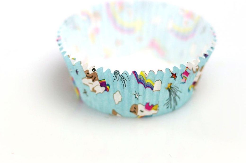 Papilotki do muffinek (foremki), 50x25 mm, Jednorożec, 60 szt. Foremki (Papilotki) do muffinek wykonane z papieru o średnicy podstawy 50 mm i wysokości 25 mm. Posiadają atesty do kontaktu z żywnością. Są tłuszczoodporne i nadają się do pieczenia do temperatury 220 stopni. Papier wykonany z ozdobami …