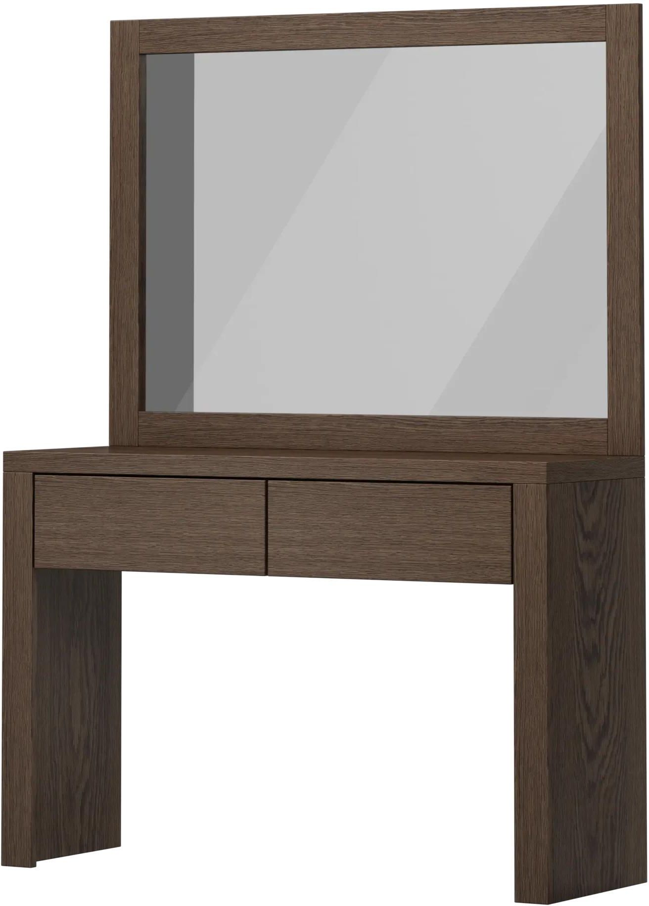 Zdjęcie przedstawia rzeczywisty wygląd produktu. Nie jest wizualizacją komputerową. Toaletka z lustrem elegancja i funkcjonalność Toaletka Vegas to połączenie stylu i praktyczności. Jej elegancka forma, wykonana z płyty okleinowanej dębem oraz elementów litego drewna dębowego, sprawia, że mebel …