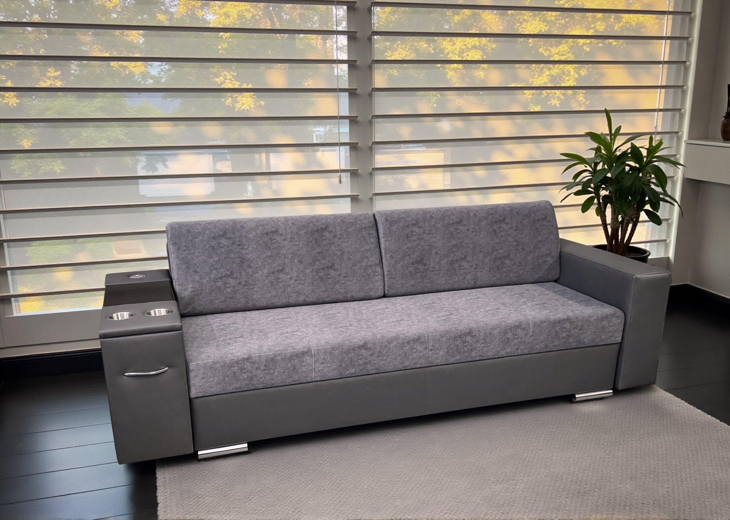 Trzyosobowa sofa rozkładana Gazebo z barkiem, skóra naturalna, tkanina Zdjęcie przedstawia rzeczywisty wygląd produktu. Nie jest wizualizacją komputerową. Wysoki wymiar wypoczynku Multifunkcyjna sofa Gazebo to klasyka gatunku - prosta konstrukcja i design, który przełamany jest jedynie ciekawym, segmentowym przeszyciem na poduszkach oparciowych i na boczkach oraz podłużnym szyciem na siedzisku. Jej uniwersalny design sprawia, że idealnie wpisze się w każde wnętrze, zarówno te bardziej nowoczesne, jak i tradycyjne.Profilowane poduszki oparciowe i szerokie, masywne boczki zapewniają komfort użytkowania, a zastosowana wysokiej jakości tkanina nadaje kanapie wyjątkowej trwałości, ale także charakteru. Zastosowane dodatkowe rozwiązania umilają codzienny wypoczynek- wygodna półka, to idealne miejsce na książkę lub laptop, uchwyty na napoje oraz otwierany barek na drobiazgi. Oryginalny design i funkcjonalność Kanapa Gazebo posiada w funkcję spania i w razie potrzeby zmienia się w wygodne miejsce do spania o wymiarach 140×190 cm, dodatkowo wyposażona jest w schowek na pościel. Staranne wykonanie i zastosowanie materiałów najwyższej jakości - zarówno siedziska kanapy, jak i powierzchnia spania wykonane są w systemie sprężyn bonelowych pokrytych wysoko elastyczną pianką HR, gwarantuje wieloletnią satysfakcję z użytkowania. Wymiary Sofy trzyosobowej: Szerokość: 250 cm Wysokość: 85 cm Głębokość: 90 cm Powierzchnia Spania: 140/190 cm Posiadamy szeroki wybór tkanin w trzech wersjach cenowych: Tkaniny z grupy I – podstawowej Tkaniny z grupy II – z dopłata 10% od ceny podstawowej Tkaniny PREMIUM – z dopłatą 25 % od ceny podstawowej Dysponujemy tkaninami plamoodpornymi łatwo czyszczącymi firmy Fargotex i wielu innych producentów.TKANINY OBICIOWESKÓRY SYNTETYCZNENaszym priorytetem jest dokonanie wszelkich starań, aby Nasi klienci byli zadowoleni.Meble wykonane są z wysokiej jakości polskich materiałów. Aby uzyskać więcej informacji, proszę o kontakt z naszymi sprzedawcami: Tel: 788 509 803Tel: 661 442 118 Istnieje możliwość obejrzenia oferowanych przez naszą firmę mebli przez 6 dni w tygodniu. Od poniedziałku do piątku w godzinach 8:00-17:00 oraz w sobotę od godziny 8:00 do 12:00 w siedzibie naszej firmy. UWAGA! WNOSZENIE TOWARU W ZAKRESIE KLIENTA ! MEBLE MIESZCZĄ SIĘ W DRZWIACH 80 CM.Czas realizacji zamówienia od 3 do 5 tygodni. Możliwy szybszy czas realizacji, jeśli dany model znajduje się na stanie magazynowym.