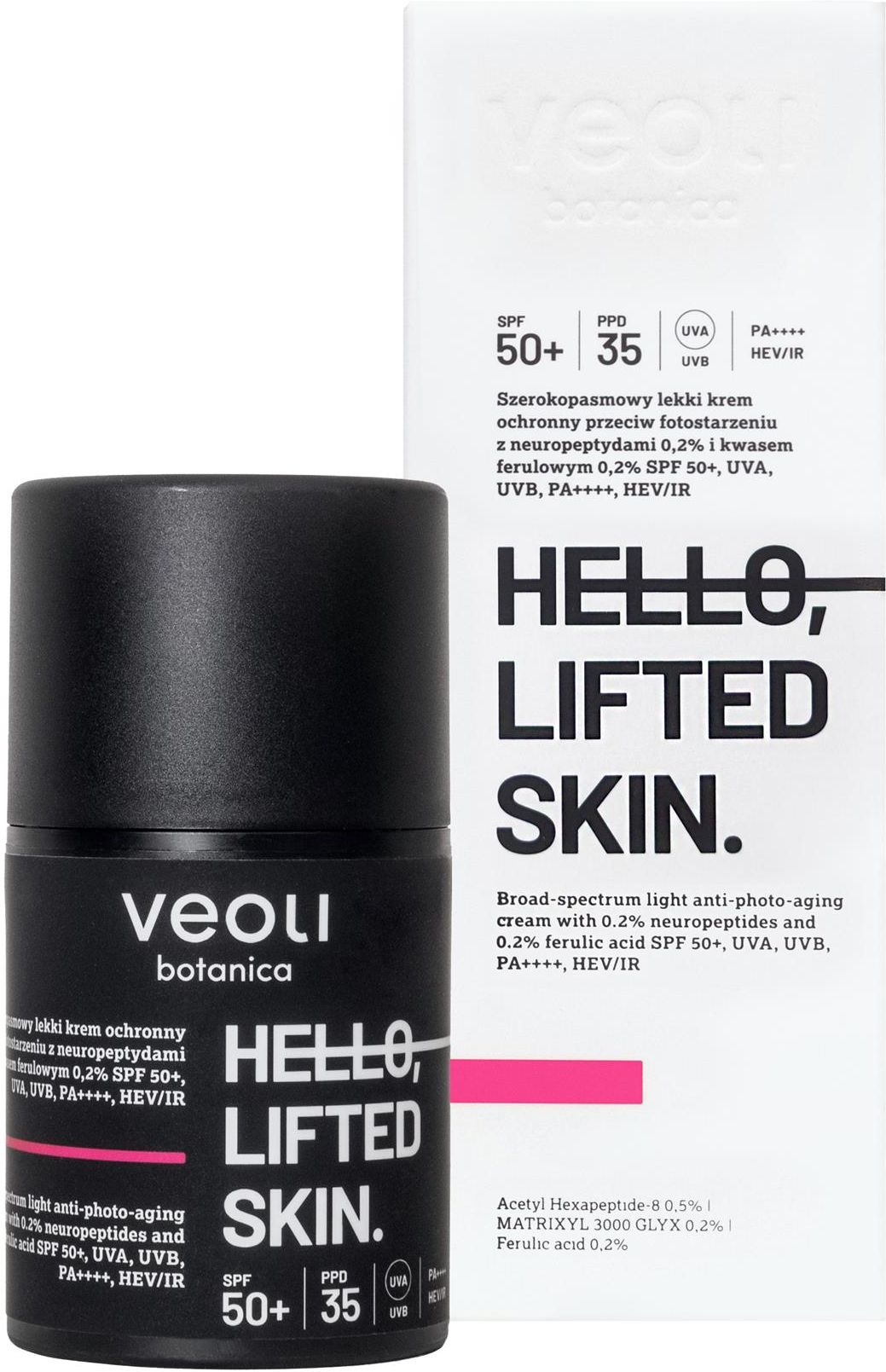 Veoli Botanica Hello Lifted Skin Szerokopasmowy Lekki Krem Ochronny SPF50+ z Neuropeptydami i Kwasem Ferulowym 50ml Dynów