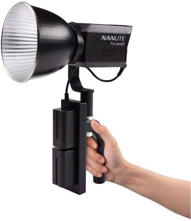 Nanlite battery holder to wielofunkcyjne urządzenie zwiększające użyteczność Twojej lampy Nanlite Forza 60. Adapter na akumulatory do zasilania lampy Rączka do trzymania Podstawka umożliwiająca postawienie lampy na podłodze Adapter do montażu lampy na statywie studyjnym Dzięki temu adapterowi, lampę Nanlite Forza 60 możesz zabrać ze sobą w plener. Zrób unikalne zdjęcia ślubne, reportażowe wykorzystując studyjne światło w plenerze. Adapter na akumulatory do Nanlite Forza 60 mieści dwa akumulatory typu Sony NP-F. Adapter wyposażony w profilowaną rączkę aby wygodnie używać lampy w terenie. Co więcej , uchwyt umożliwia również zamontowanie lampy na statywie studyjnym co doskonale zwiększa jego funkcjonalność. Adapter BH-FZ60 zawiera kabel wyjściowy DC do podłączenia adaptera do portu wejściowego DC w Nanlite Forza 60.