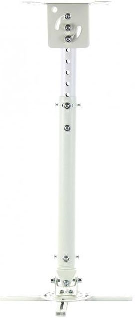 Uchwyt sufitowy do projektora ART P-107W 45-76cm biały to uniwersalnych uchwyt sufitowy pozwalający na właściwe zamontowanie projektora z możliwością regulacji dystansu od sufitu w zakresie od 45-76cm. Ten model uchwytu wyróznia mozliwość montażu na skośnych sufitach dzięki płynnej regulacji kąta pionowego słupka względem powierzchni sufitu. Ponadto uchwyt umożliwa regulację nachylenia projektora o +/-15 stopni oraz pełny obrót do okoła osi uchwytu. System ukrywania kabli pozwala na estetyczne przeprowadzenie kabli do projektora. Podstawowe informacje: maksymalna waga projektora: 15 kg, regulacja w pionie (nachył): od +15 do -15 stopni, regulacja w poziomie (obrót): 360 stopni, odległość od sufitu: regulowana od 45 do 76 cm, posiada system ukrywania kabli, blokada zabezpieczająca projektor przed zsunięciem, wymiary (szer x dł x wys): 525 x 350 x 118mm, solidna stalowa konstrukcja lakierowana proszkowo na biały kolor, pasuje do większości projektorów.