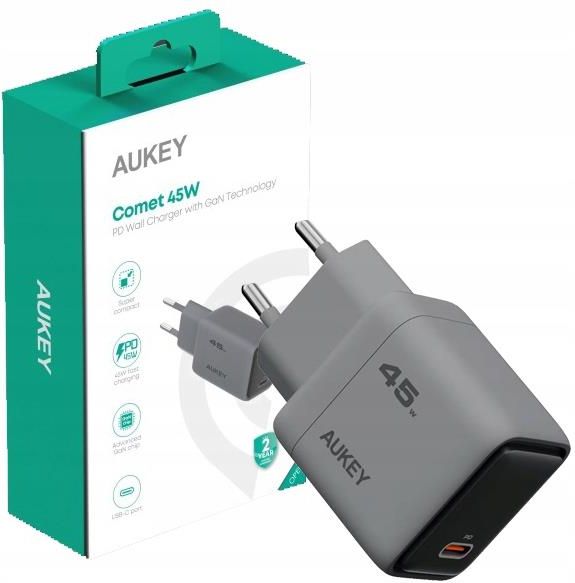 Aukey Pa-C2 Ładowarka 1Xusb-C 45W Gan Pd3.0 Qc4+ Apple 2.4A Pps Fcp Afc Scp Działdowo