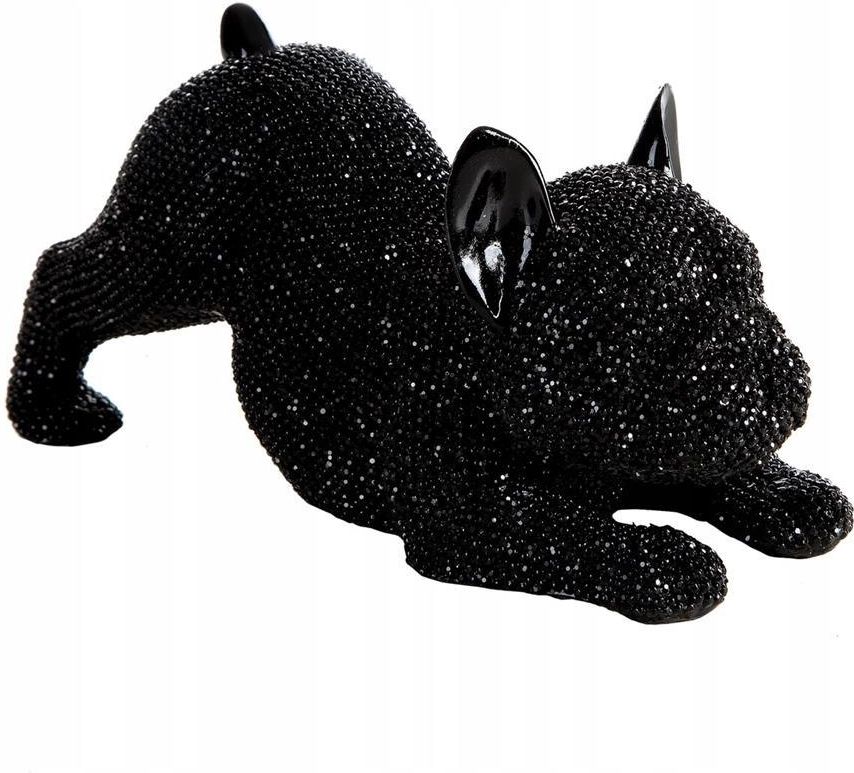 Figurka dekoracyjna Figurka dekoracyjna w formie psa w stylu glamour, to niezwykły element dekoracyjny, który emanuje elegancją i blaskiem. Dekoracyjna figurka może stanowić centralny punkt dekoracji w dowolnym pomieszczeniu, od salonu po sypialnię. Jego blask i elegancja przyciągają uwagę i dodają stylu każdemu wnętrzu. Wykończona czarnym brokatem To również oryginalny drobiazg, który znakomicie nadaje się na prezent. Długość : 19 cm Wysokość : 9 cm Szerokość : 8 cm Kolor : Złoty Skład : 100% żywica poliestrowa