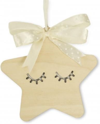Deku – Gwiazdka z kokardką 10x10 cm 000218 Urocza i modna ozdoba pokoiku dziecięcego oraz każdego wnętrza. Posiada sznureczek do zawieszenia na ścianie oraz cudowna kokardę. Można ją także oprzeć o ścianę lub półkę. Polecamy! specyfikacja: wymiary: szerokość: 10 cm, wysokość: 10 cm gwiazdka wykonana jest ze sklejki brzozowej o grubości 3 mm