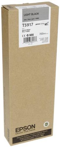 Epson T591700 Jasny czarny Wkład atramentowy Light Black T591700 Pojemność 700ml Produkt kompatybilny z: Epson Stylus Pro 11880