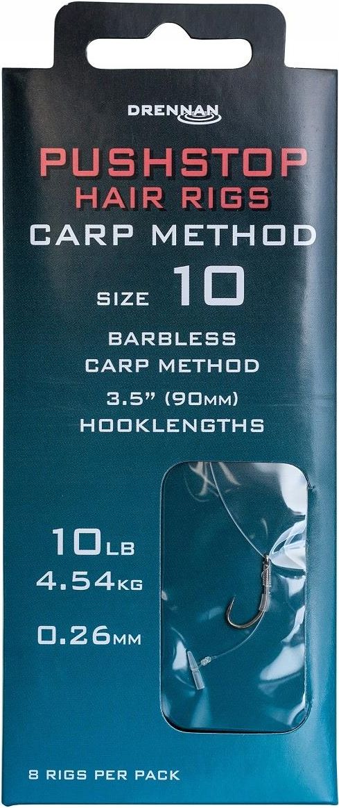Przypon Pushstop Carp Method Hak 16 na żyłce 0,23mm długość przyponu 8 cm hak bezzadziorowy8 sztuk w opakowaniu - Zestaw gotowych przyponów przeznaczonych do łowienia na methode- Haczyki nie posiadają zadziorów- Przypony wyposażone są we włos, a na nim zamontowany jest stoper 'pushstop'- Niezbędnymi narzędziami do montażu na tym przyponie pelletu lub kulki jest wiertełko oraz igła 'pushstop', Obydwa przedmioty są do nabycia w naszej ofercie. HNQCMT016