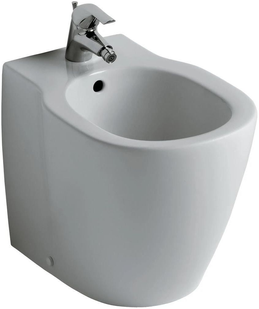 Bidet stojący Owalny bidet stojący o rozmiarze 54,5 x 36 cm i wysokości 40 cm wykonana z ceramiki w kolorze białym. Bidet posiada otwór przelewowy i otwór na baterię bidetową. Bidet pochodzi z serii Connect, producenta Ideal Standard o numerze katalogowym E799501. Do bidetu dołączony jest zestaw …