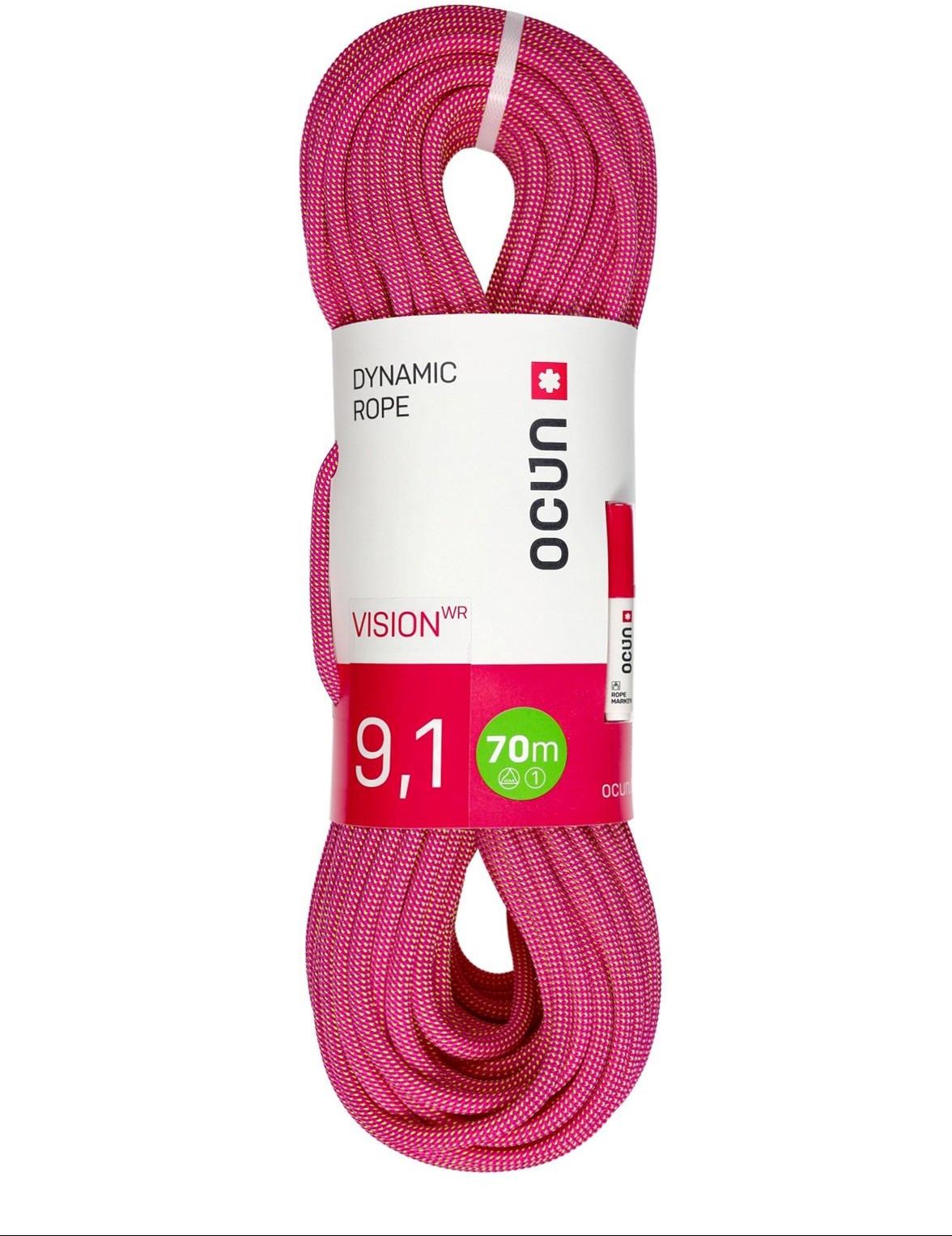 Lina dynamiczna Ocun Vision WR 9.1 mm posiada certyfikację liny pojedynczej. Oznacza to, że sprawdzi się ona zarówno podczas wspinaczki sportowej, jak i wielowyciągowej. Zaawansowana konstrukcja tego modelu sprawia, że zapewnia on wysoki poziom bezpieczeństwa i charakteryzuje się wysoką wytrzymałością. Oplot wykonano z termiczną obróbką rdzenia, co zwiększa jego wytrzymałość, a także pozytywnie wpływa na jego dynamiczne rozciągnięcie. Zastosowano tu także impregnację oplotu, która czyni linę trwalszą. Powoduje też, że wilgoć, pył, czy zabrudzenia nie wnikają zbyt łatwo w oplot. Warto dodać, że impregnat nie zawiera szkodliwych związków chemicznych PFC. Cechy: Rodzaj liny Lina dynamiczna Typ liny Lina pojedyncza Długość 70 m Średnica 9,1 mm Waga liny 54 g/m Liczba odpadnięć UIAA 6 Ślizganie oplotu 0% Maksymalna siła uderzenia 8,3 kN Maksymalna siła uderzenia 7,3 kN (1 żyła, obciążenie 55 kg) Wydłużenie dynamiczne (lina pojedyncza) 35% Wydłużenie statyczne (lina pojedyncza) 6,3% Węzłowatość 0,8 Zgodność z normą EN 892 i UIAA 101 CE Z certyfikatem UIAA Tak Impregnacja Podstawowa - tylko oplotu Oznaczenie środka Z oznaczeniem Bi-color Bez Bi Color Trwałe połączenie rdzenia i oplotu Bez trwałego połączenia Materiał oplotu Poliamid (PA) Materiał rdzenia Poliamid (PA) Liczba włókien oplotu 40 Przyjazność środowisku PFC-Free Przeznaczenie Wspinaczka / Bouldering