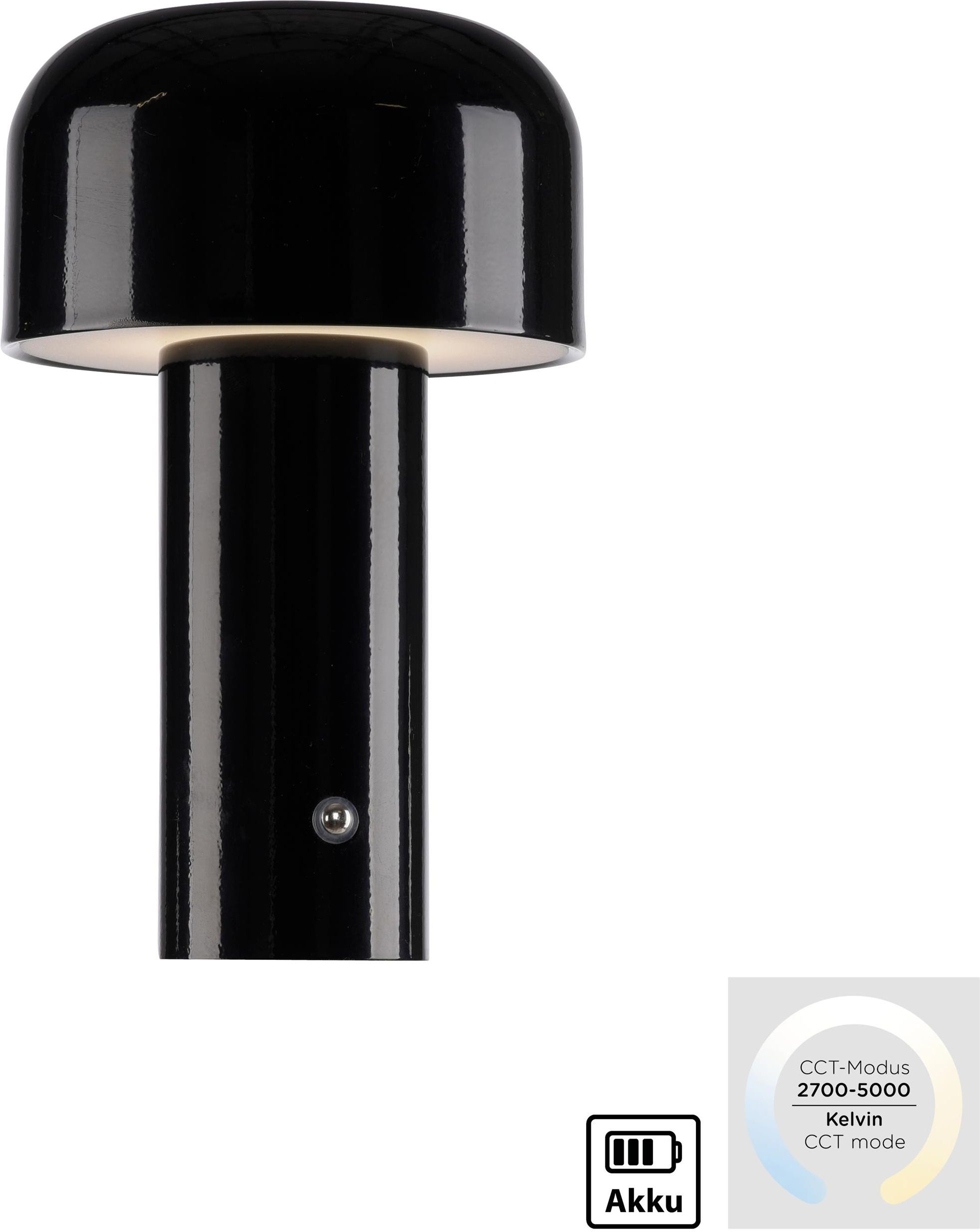 PAUL NEUHAUS JUST LIGHT LED akumulatorowa lampa stołowa w kolorze czarnym PAUL NEUHAUS lampa stołowa LED na akumulator w błyszczącej czerni ucieleśnia dekoracyjną elegancję i elastyczność. Biurkowa lampa oferuje bezprzewodowe rozwiązanie pro Twoich osobistych potrzeb oświetleniowych. Światło jest wyposażone w baterię 1200 mAh, która zapewnia czas świecenia około 4 godzin, a krótki czas ładowania wynoszący zaledwie około 3 godzin zapewnia, że wkrótce będziesz mógł ponownie użyć lampy. Lampa w kształcie grzyba dodaje odrobinę zabawy. Mała lampa nie pozostawi Cię w ciemności - dozuj si światło zgodnie z życzeniem za pomocą ściemniacza dotykowego, który umożliwia płynną regulację jasności. 3-stopniowa funkcja CCT pozwala wybrać temperaturę barwową w trzech kolorach 2700K/3800K/5000K. Oznacza to, że możesz dostosować jasność i kolor do swoich indywidualnych sytuacji życiowych. Ta elastyczność sprawia, że jest idealnym towarzyszem pro przytulne wieczory w salonie lub jako światło otoczenia na stole jadalnym. Elastyczność dodatkowo podkreśla łatwość umieszczenia. Lampa idealnie dopasowuje się do Twoich potrzeb i zapewnia odpowiednie światło wszędzie. Mała, dekoracyjna lampka si z pewnością szybko znajdzie odpowiednie miejsce w Twoich czterech ścianach. Kabel USB (bez zasilacza) jest dołączony, dzięki czemu można ładować szybko i wygodnie. Poczuj przyszłość oświetlenia dzięki lampie stołowej LED - stylowej,Elastyczne i praktyczne rozwiązanie pro Twoich potrzeb w zakresie osvětlení.Výška:216 mm, Możliwość przyciemniania: tak, Waga: 520g, Szerokość: 129mm,Średnica: 129mm, Długość: 129mm, Ochrona IP: IP20, Strumień światła:25lm, Kolor światła: 2700-5000K, Pobór mocy: 1W, Moc całkowita: 1W,Napięcie: 5V DC, Gniazdo: LED, Pc. Źródło światła: tak, Materiał: metal, Kolor produktu: czarny Waga: 0,52 kg|520 Całkowity pobór mocy max.: 1 Liczba źródeł światła: 1 Długość: 129 Szerokość: 129 Średnica: 129 Wzrost: 216 Strumień świetlny całkowity: 25 Napięcie / zasilanie: 5V DC Źródło światła w zestawie: tak Możliwość ściemniania: tak Funkcje: CCT|ładowalny|wyłącznik na korpusie Kolor: czarny Stopień ochrony: IP20 Marka: JUST LIGHT Materiał: metal Kształt / motyw: okrągły|cylinder Typ źródła zasilania: LED Styl: nowoczesny Kolor światła: zimny biały|zimny biały dzienny|ciepły biały