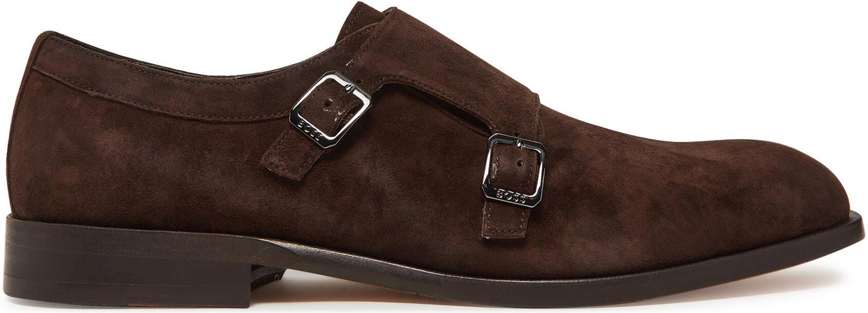 Brązowe półbuty męskie od marki BOSS to doskonały wybór dla mężczyzn ceniących elegancję i wysoką jakość. Wykonane z naturalnej skóry zamszowej, zapewniają wyrafinowany wygląd, który podkreśli każdą wizytową stylizację. Dzięki zapięciu na sprzączkę, zakładanie butów jest szybkie i wygodne, co docenisz w codziennych sytuacjach. Te półbuty to kwintesencja klasy i stylu, idealna na specjalne okazje, jak również do uzupełnienia eleganckich, codziennych outfitów. Wybierz półbuty BOSS i ciesz się niezrównanym komfortem oraz modnym wyglądem!