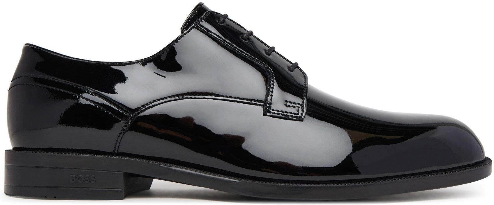 Półbuty męskie marki BOSS to synonim klasy i elegancji. Wykonane z połączenia wysokogatunkowego tworzywa syntetycznego oraz naturalnej skóry lakierowanej, wyróżniają się wyjątkowym wykończeniem, które przyciąga wzrok. Okrągły nosek dodaje im uniwersalnego charakteru, a sznurowanie zapewnia idealne dopasowanie do stopy. To obuwie, które doskonale sprawdzi się na formalne okazje, podkreślając styl i profesjonalizm każdego mężczyzny. Idealny wybór dla osób ceniących wysoką jakość i ponadczasowy design.